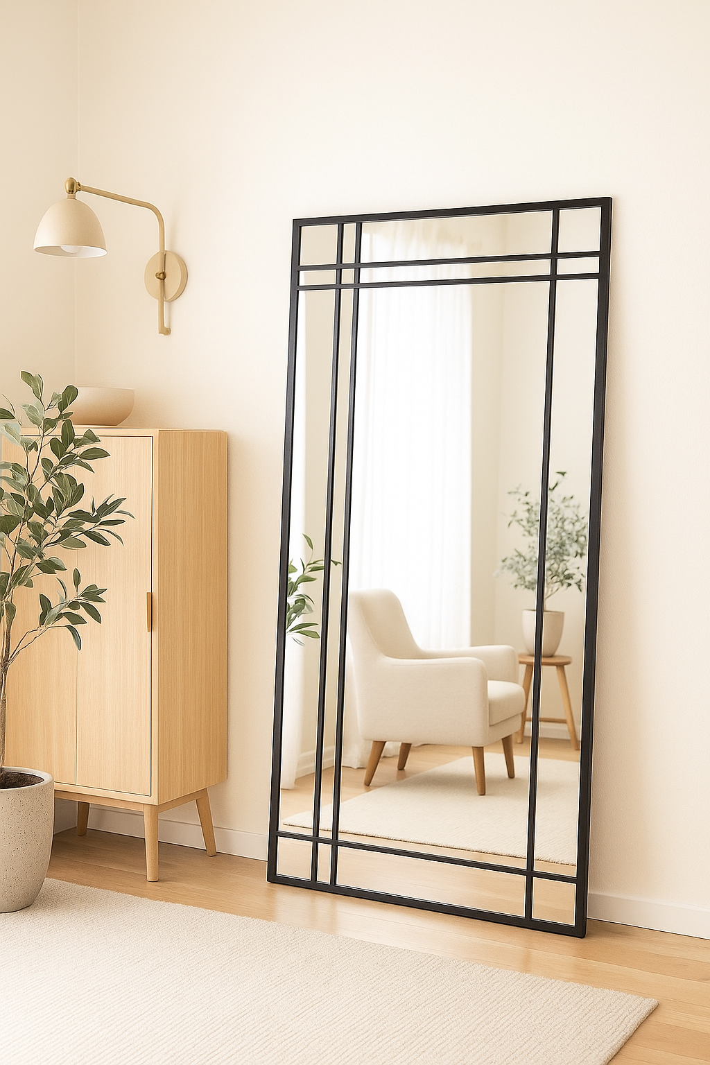 Lustro ICE LOFT – loftowe lustro ze szprosami 6-kwater | industrialne duże lustro do przedpokoju, salonu, garderoby