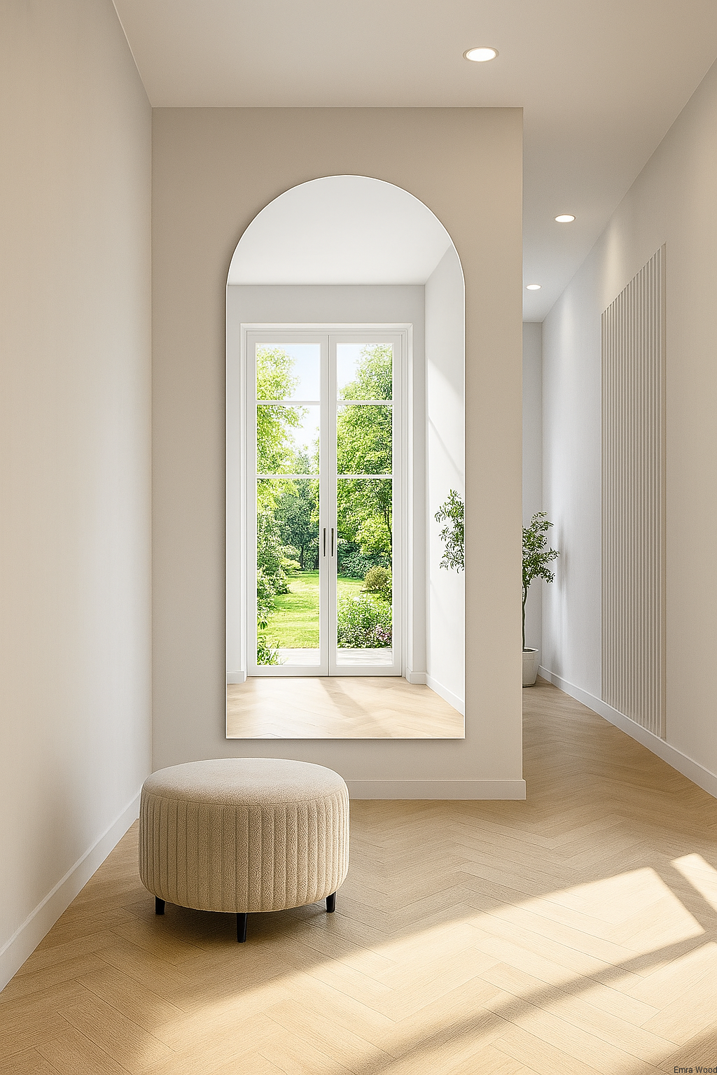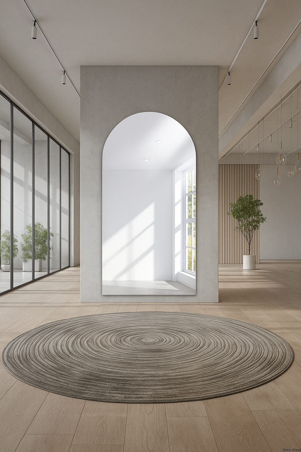 Lustro PENELOPE – półokrągłe lustro dekoracyjne w stylu minimalistycznym do przedpokoju, salonu i łazienki