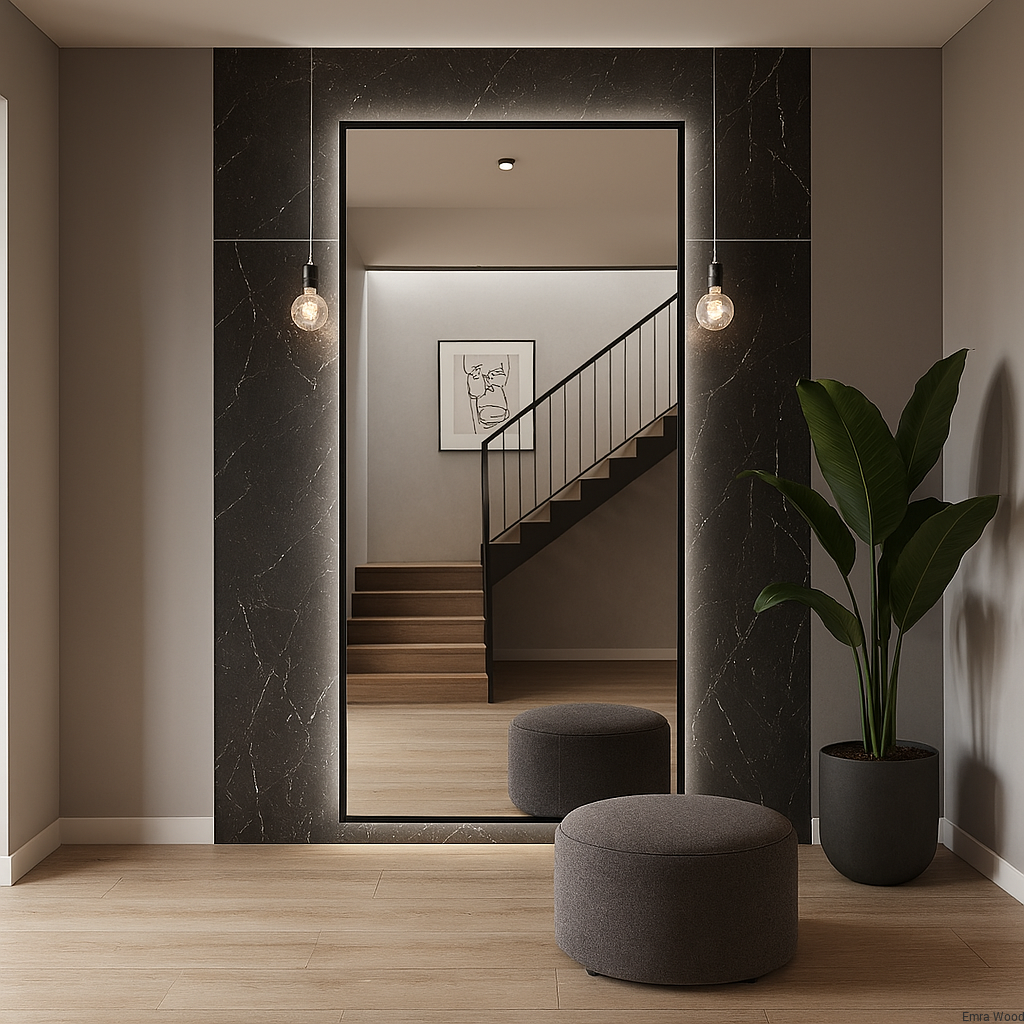 Lustro w ramie MDF z podświetleniem LED to nowoczesna i stylowa propozycja do każdego wnętrza – idealnie sprawdzi się w łazience, sypialni, przedpokoju czy garderobie. Rama wykonana z jednolitej płyty MDF eliminuje widoczne łączenia, a odpowiednie zaimpregnowanie i malowanie sprawiają, że całość prezentuje się niezwykle luksusowo.