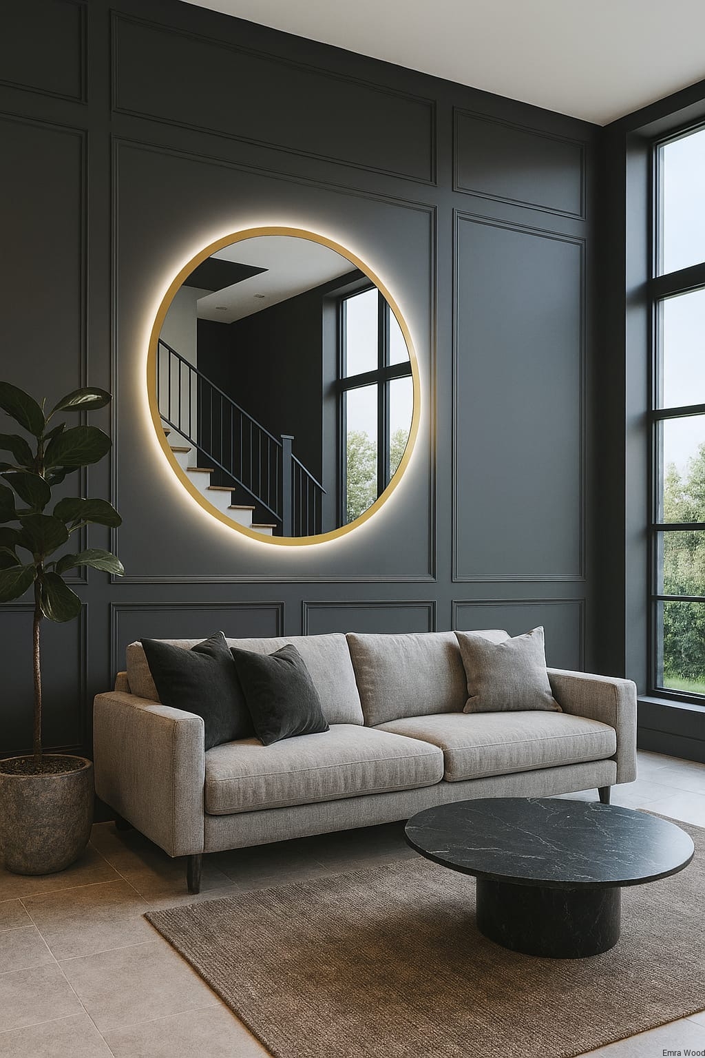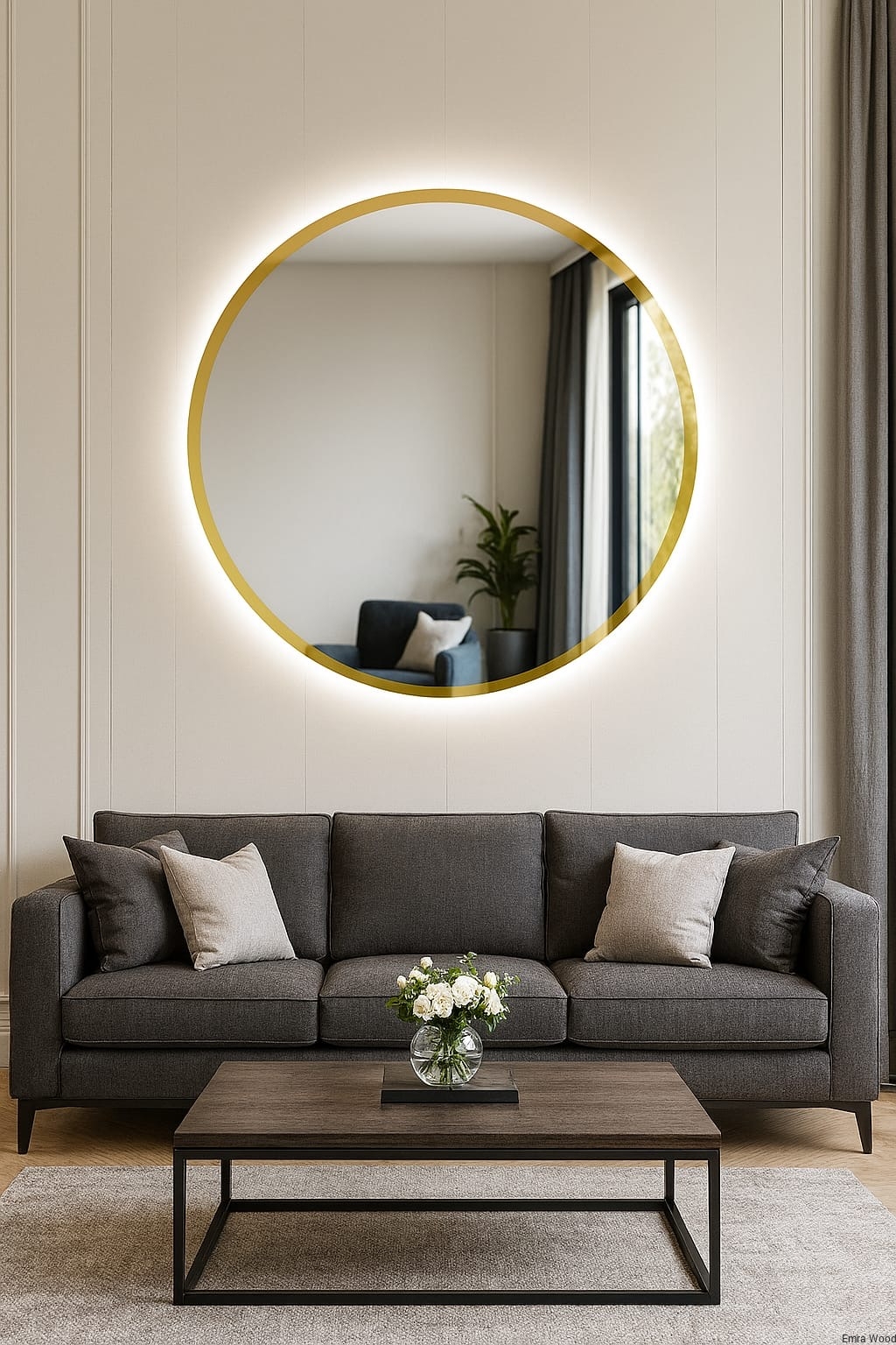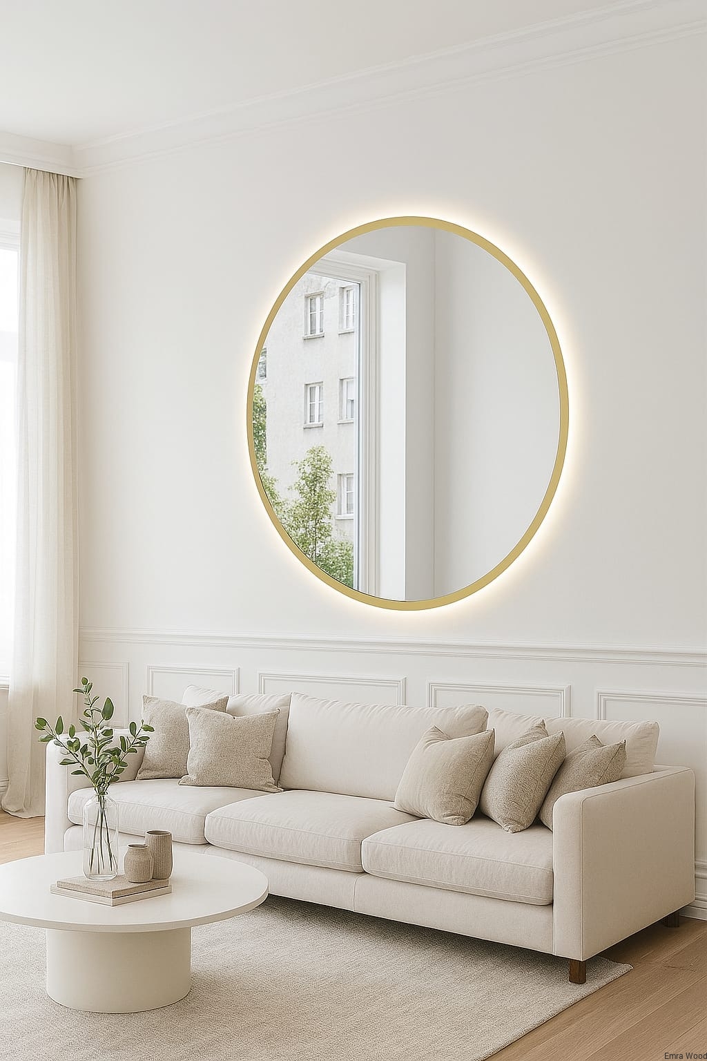 Lustro LUVO – okrągłe lustro ścienne do łazienki, salonu i sypialni w stylu nowoczesnym i minimalistycznym
