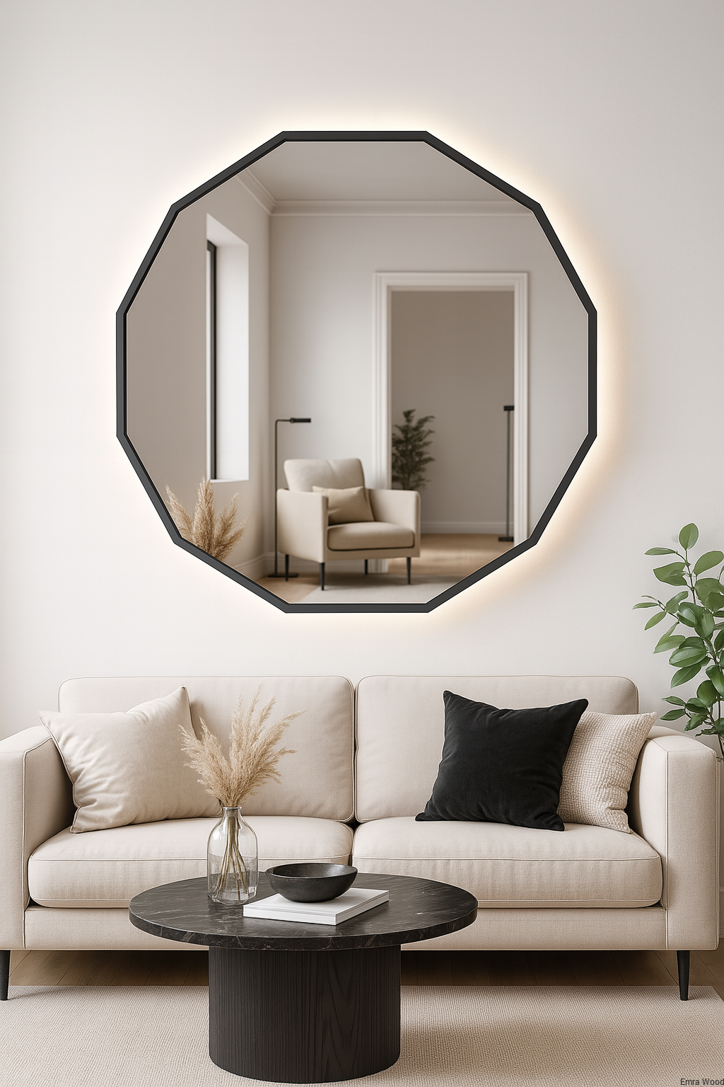 Strona główna » Nowości » Lustro NÉROLI – nowoczesne lustro wielokątne w czarnej ramie MDF | designerskie lustro dekoracyjne do salonu, sypialni, łazienki