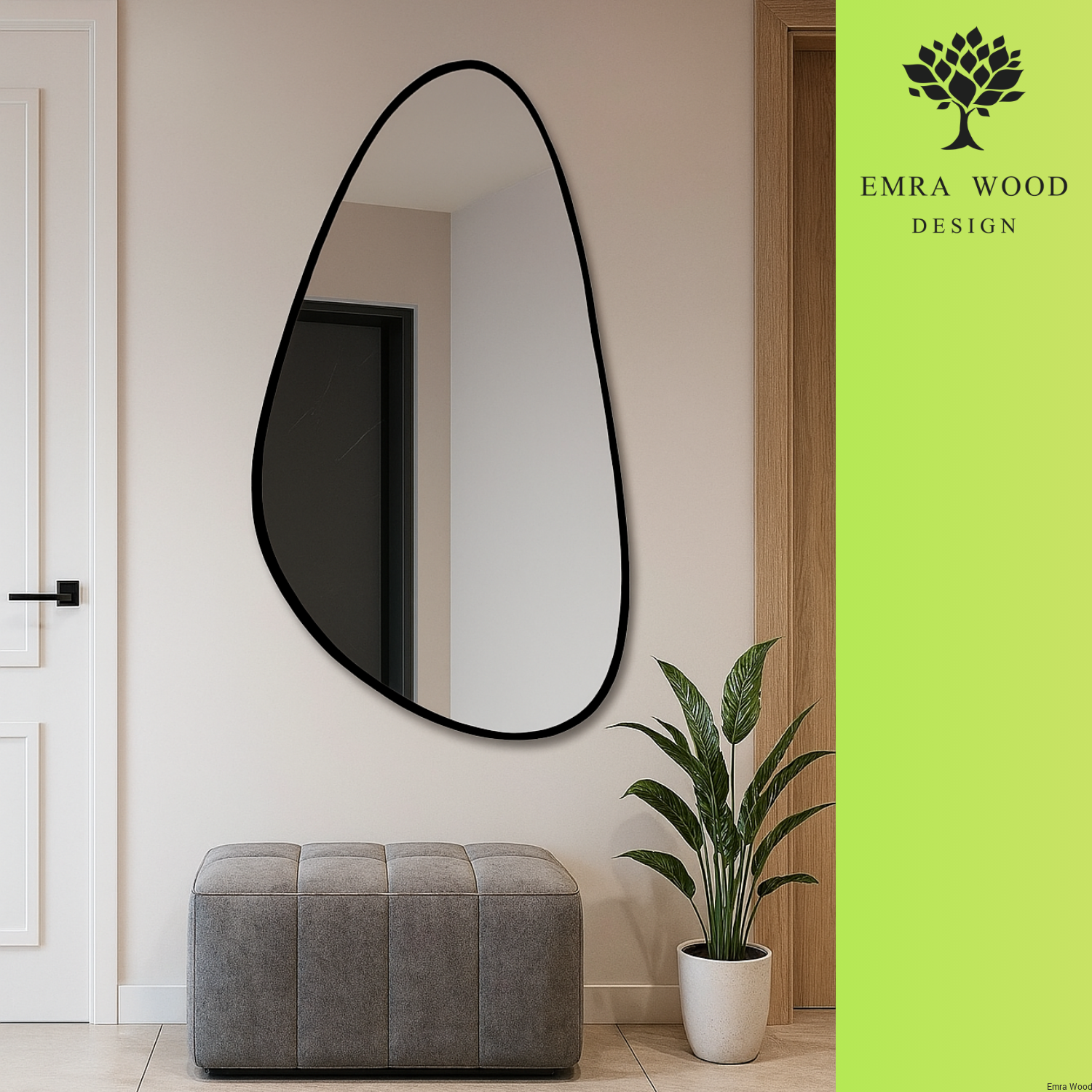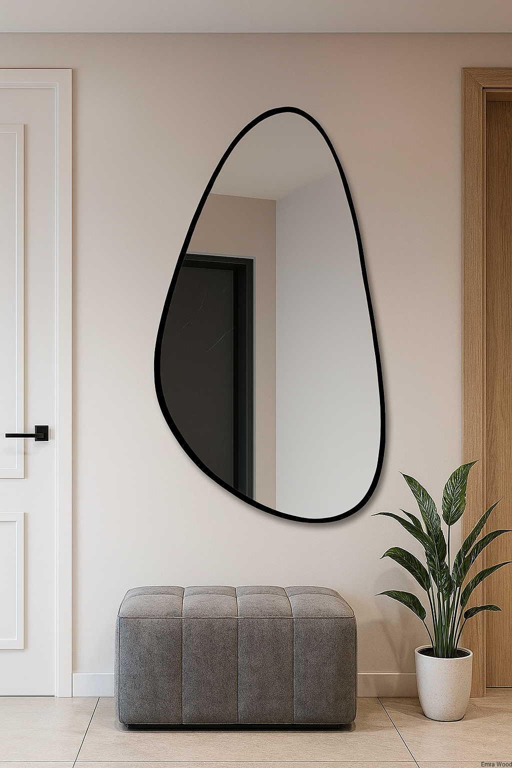 Lustro ORGANIC DROP – lustro o nieregularnym kształcie w czarnej ramie | Designerskie lustro organiczne do przedpokoju, salonu i sypialni