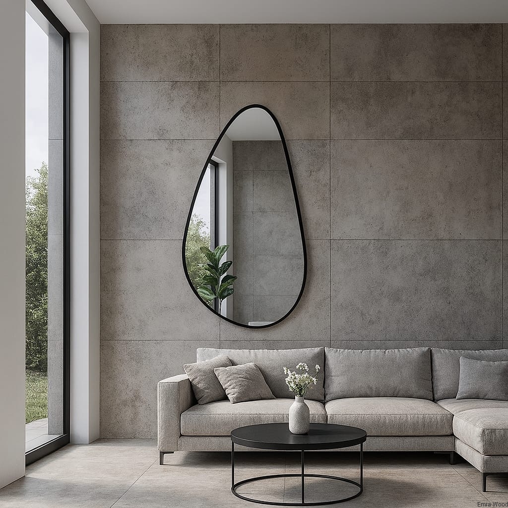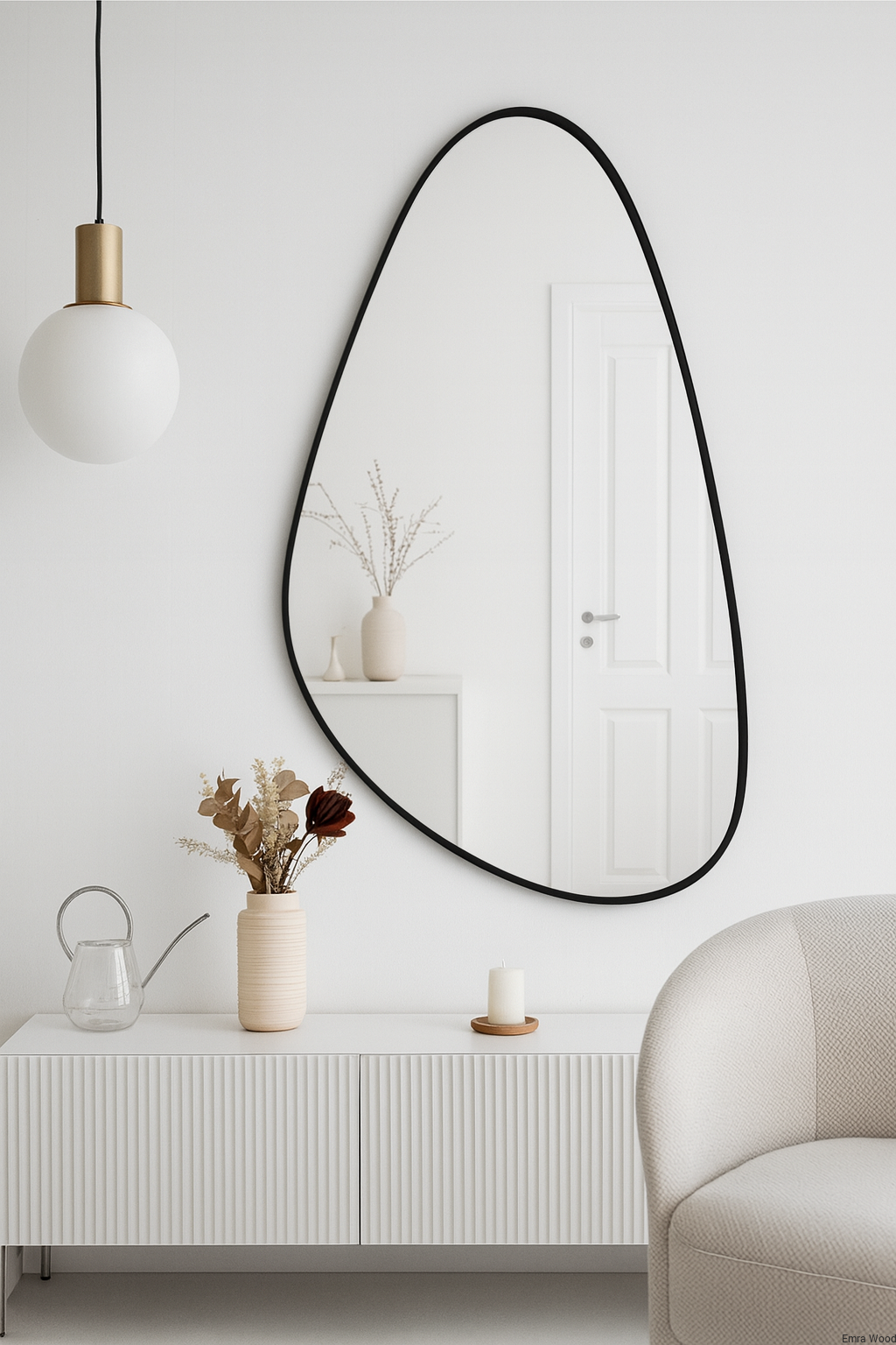 Strona główna » Nowości » Lustro ORGANIC DROP – lustro o nieregularnym kształcie w czarnej ramie | Designerskie lustro organiczne do przedpokoju, salonu i sypialni