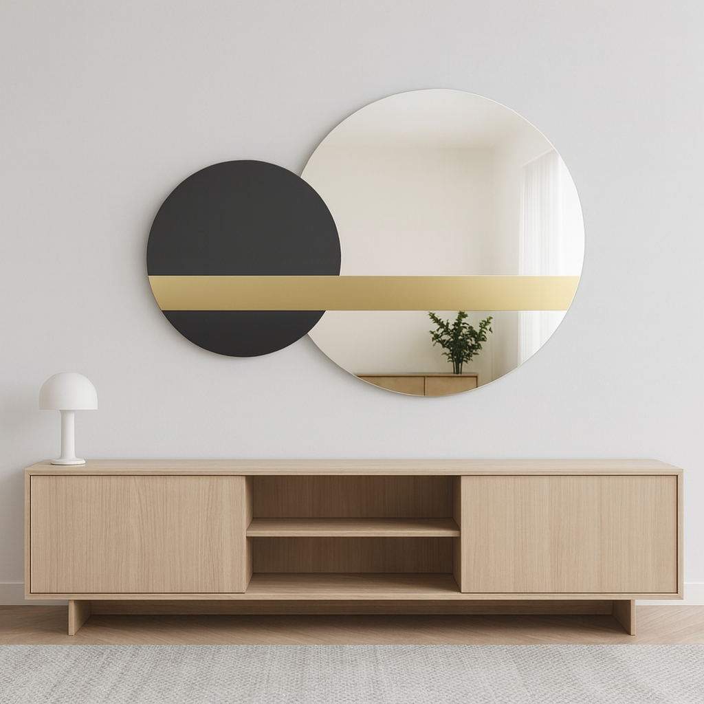 Lustro GOLDEN LUX – szlifowane lustro dekoracyjne o geometrycznym kształcie do łazienki, salonu, holu lub sypialni | Okrągłe lustro bez ramy na ścianę