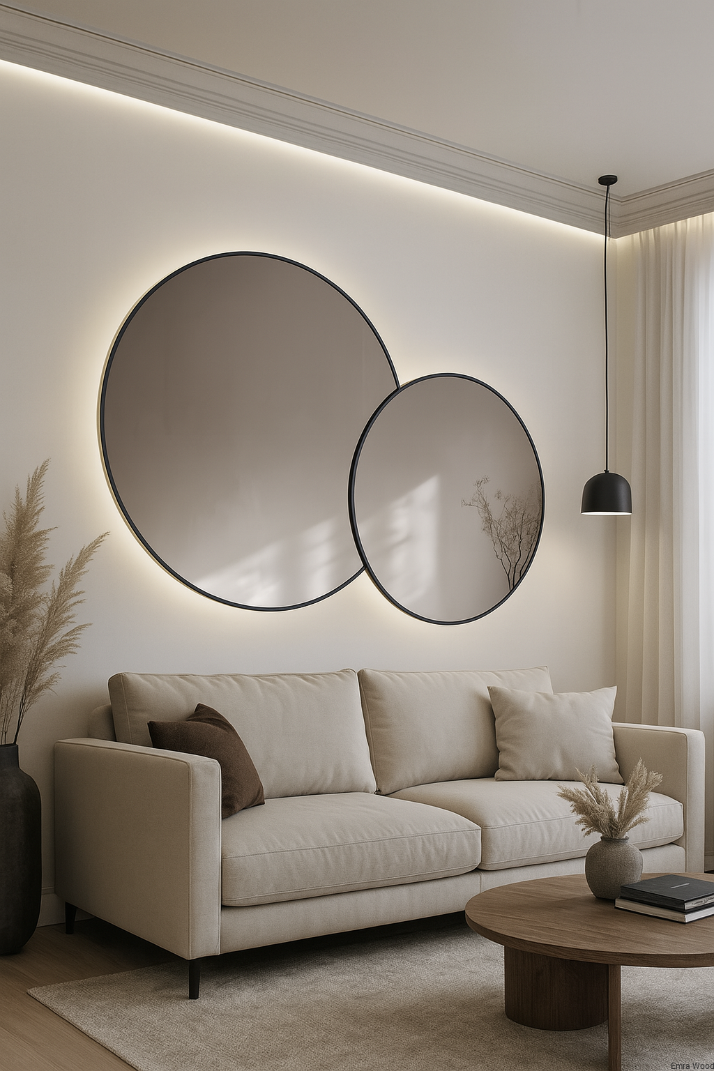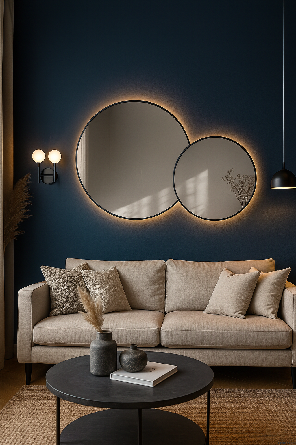 Strona główna » Sypialnia » Lustro VOW – zestaw dwóch okrągłych luster LED w ramie MDF slim | Lustra dekoracyjne do salonu, sypialni i przedpokoju