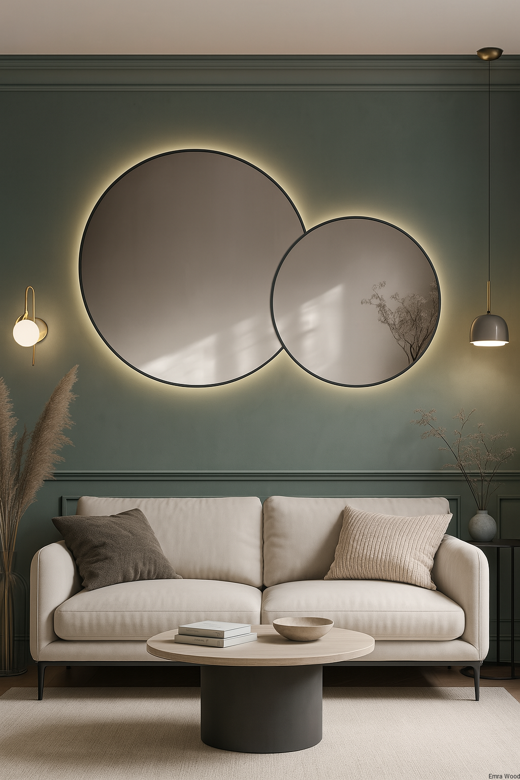 Lustro VOW – zestaw dwóch okrągłych luster LED w ramie MDF slim | Lustra dekoracyjne do salonu, sypialni i przedpokoju