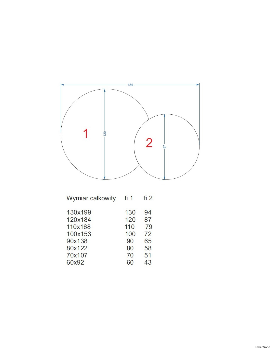 • Standardowe średnice: 50 cm, 60 cm, 70 cm, 80 cm