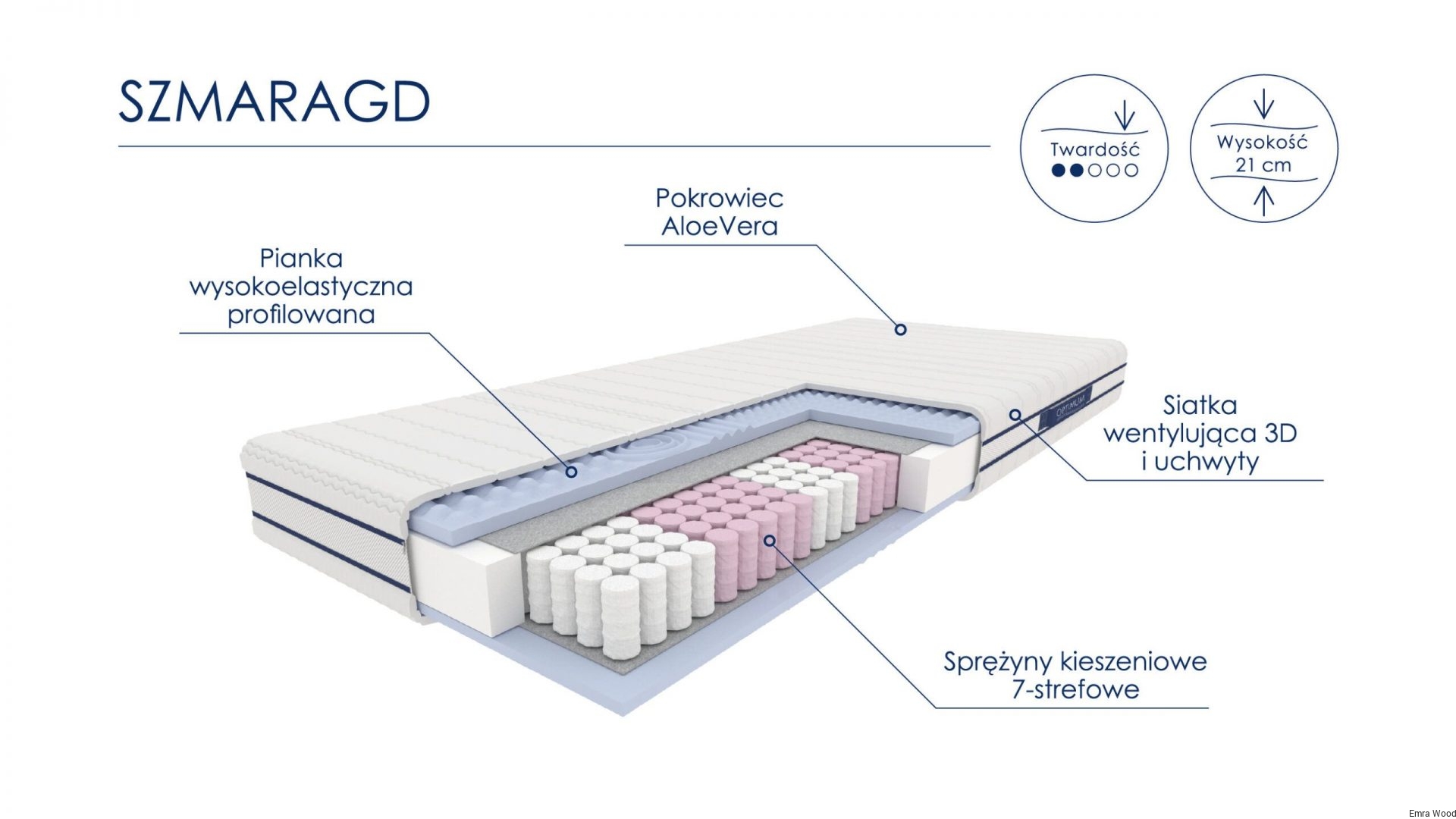• sprężyny kieszeniowe 7-strefowe – 12 cm