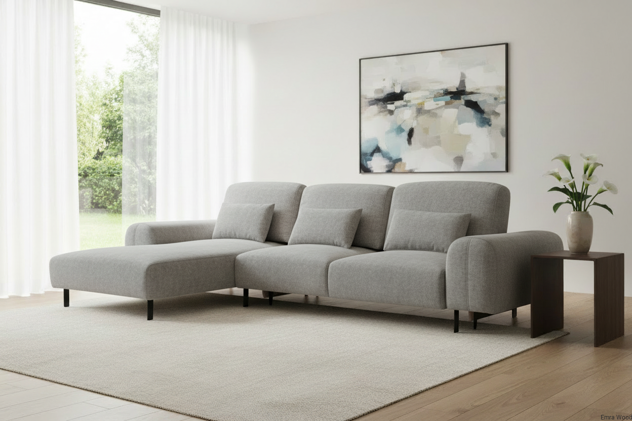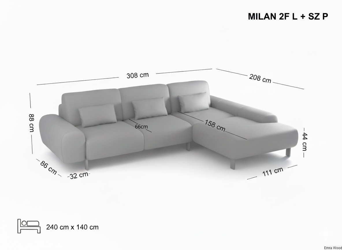 Narożnik Milan to elegancki i nowoczesny mebel, ręcznie wyprodukowany z dbałością o każdy detal. Wypełniony starannie dobranymi piankami wysokoelastycznymi, opartymi na drewnianych listwach sprężynujących, zapewnia wyjątkowy komfort siedzenia i wypoczynku. Milan posiada również praktyczną funkcję spania, dzięki czemu doskonale sprawdza się zarówno na co dzień, jak i podczas wizyt gości. Wysokie metalowe nóżki nadają narożnikowi lekkości oraz sprawiają, że utrzymanie porządku pod meblem jest niezwykle łatwe. To połączenie stylu, wygody i funkcjonalności.