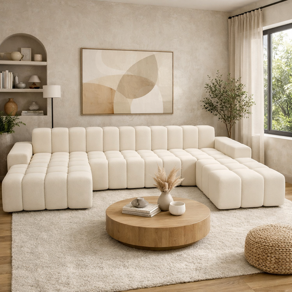 Ten przestronny narożnik w kształcie litery U został zaprojektowany z myślą o wspólnym wypoczynku – idealnie sprawdzi się zarówno podczas rodzinnych wieczorów, jak i spotkań z przyjaciółmi. Dzięki szerokiemu siedzisku i wysokiej jakości wypełnieniu zapewnia doskonałe podparcie i komfort na najwyższym poziomie.