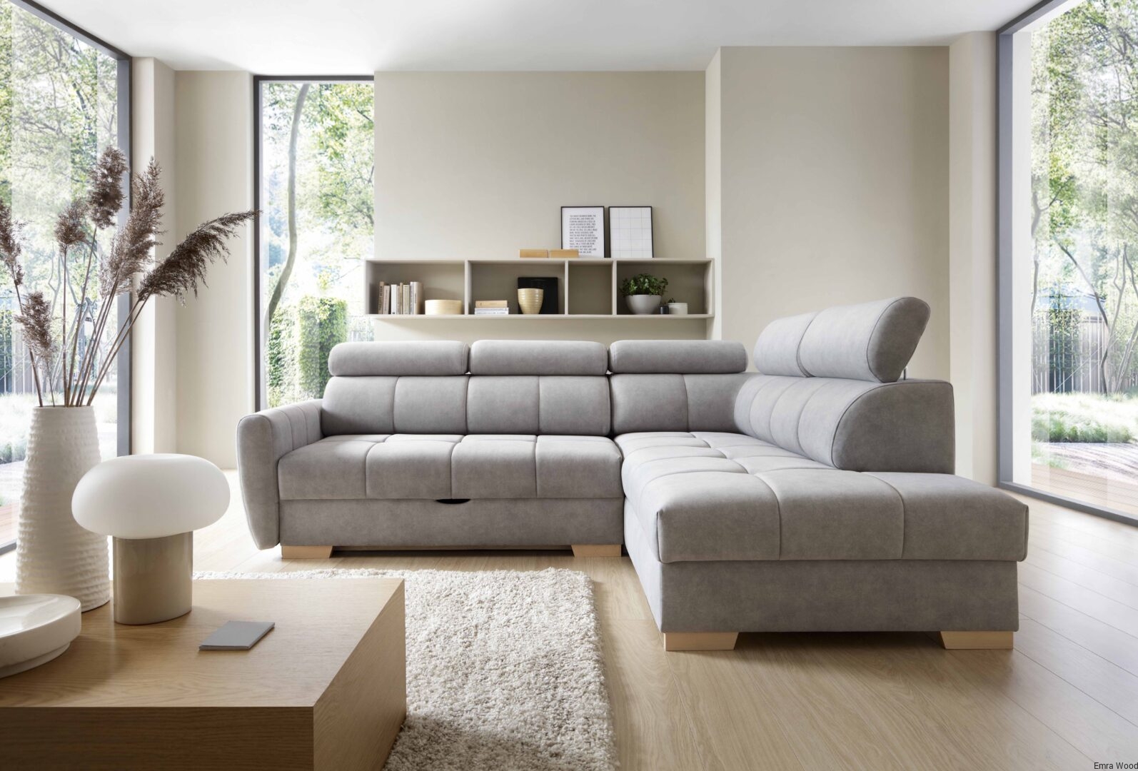 Mebel został wyposażony w duży pojemnik na pościel, w którym bez problemu zmieścimy komplet pościeli.