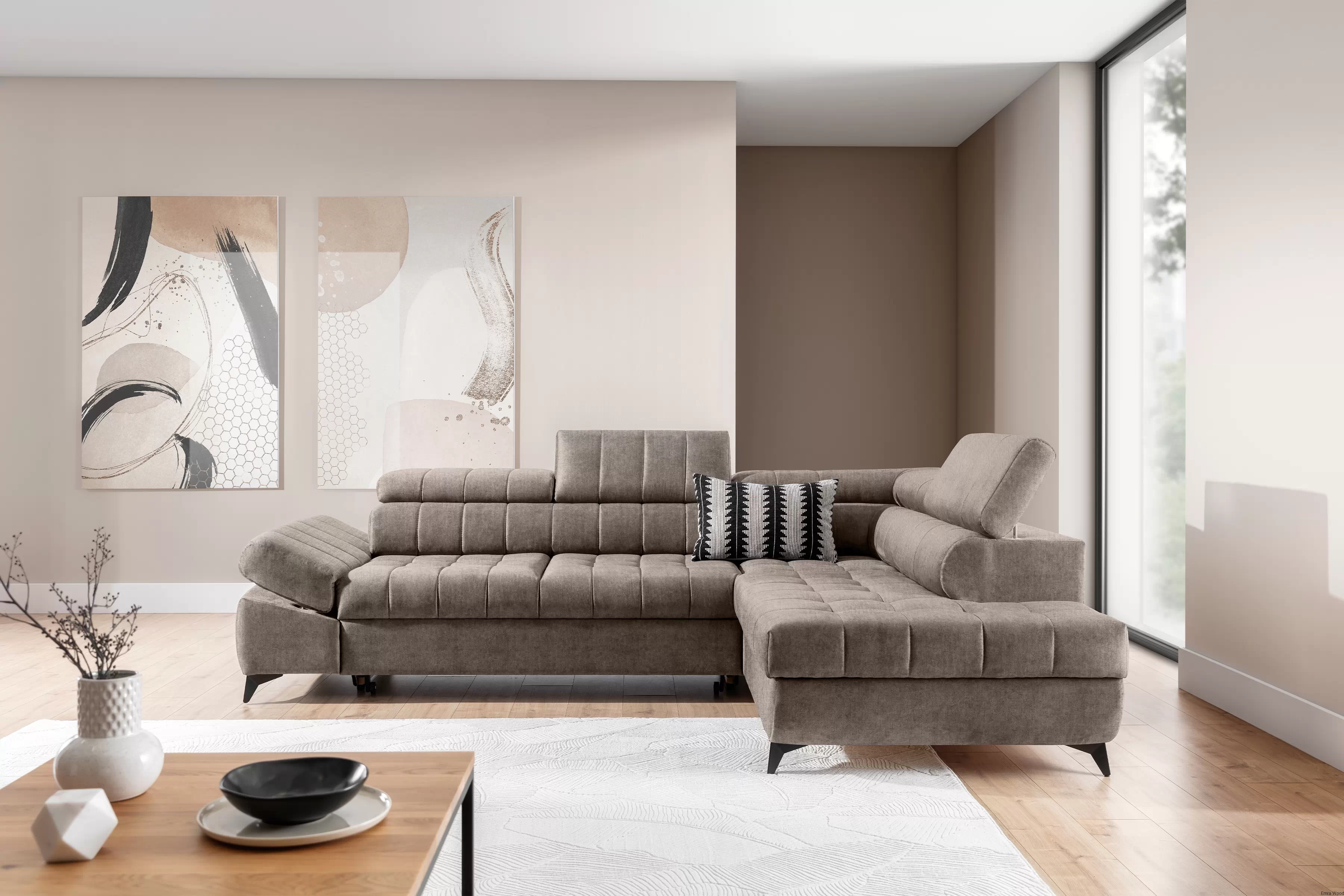 Narożnik z funkcją spania Valoris L prawostronny - beżowa tkanina Maya 01
