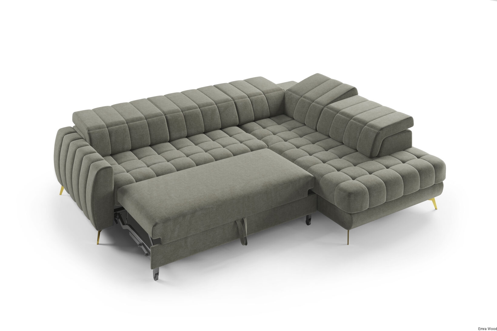 Mebel został wyposażony w duży pojemnik na pościel, w którym bez problemu zmieścimy komplet pościeli.