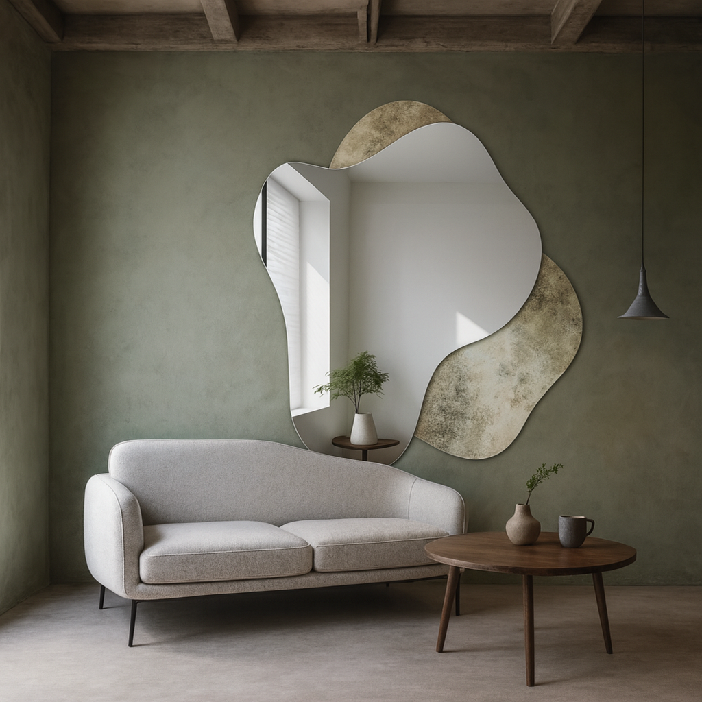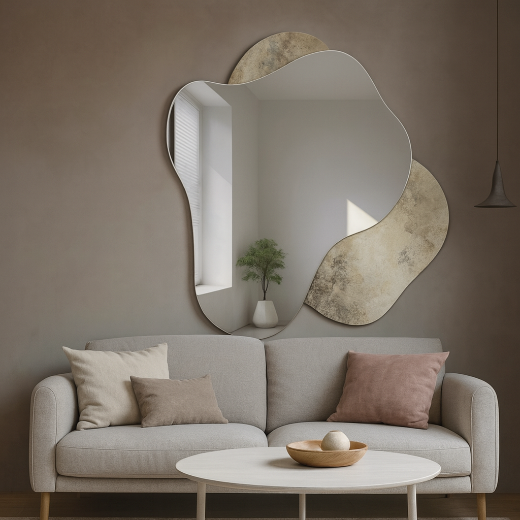 Rodzaj lustra: lustro wielopłaszczyznowe – lustro, które składa się z kilku tafli połączonych ze sobą wedle projektu. Elementy nie są zlicowane w jedną powierzchnię