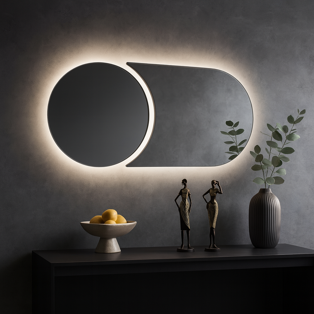 Zestaw składa się z dwóch osobnych luster o szlifowanych krawędziach - lustra koła i lustra w kształcie komety.