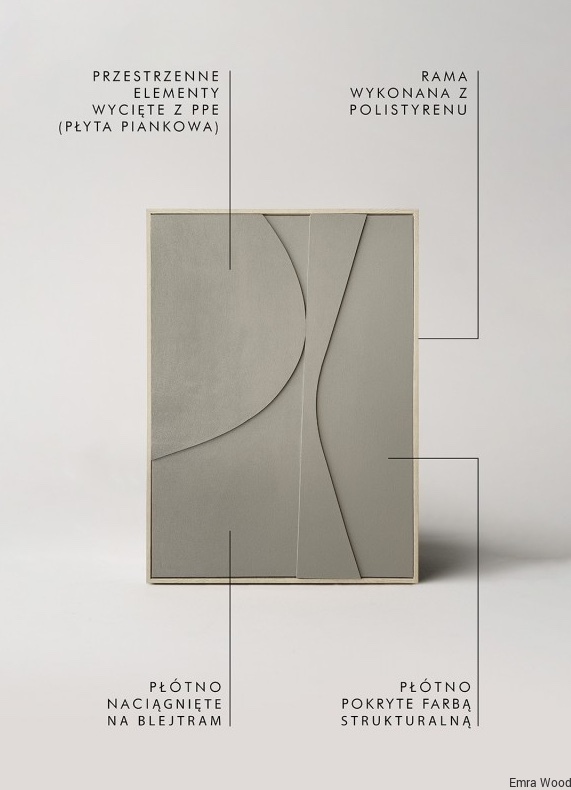 Obrazy z kolekcji Relief to jedyne w naszej ofercie, w których nie ma możliwości zmiany ramy na inną.