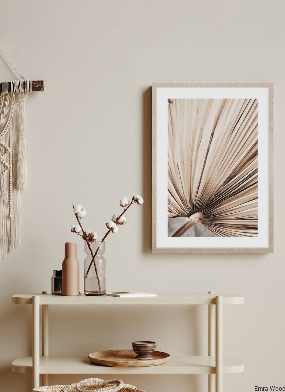 Obraz Dried palm leaves no.3 przedstawia ujęcie makro suszonego liścia palmowego, ukazujące jego strukturę w najdrobniejszych detalach. Ta wyjątkowa grafika wprowadzi do Państwa wnętrza naturalny klimat i harmonijnie wkomponuje się w styl boho. Obraz utrzymany jest w naturalnych odcieniach jasnego beżu, co idealnie pasuje do jasnych, przytulnych pomieszczeń. Oprawa obrazu wykonana została z jasnego drewna, dzięki czemu obraz suszonych traw wprowadzi do wnętrza ciepły, naturalny akcent. Wszystkie elementy zostały dopracowane w każdym detalu, aby stworzyć spójną całość, która będzie stanowić doskonałe uzupełnienie każdej aranżacji.