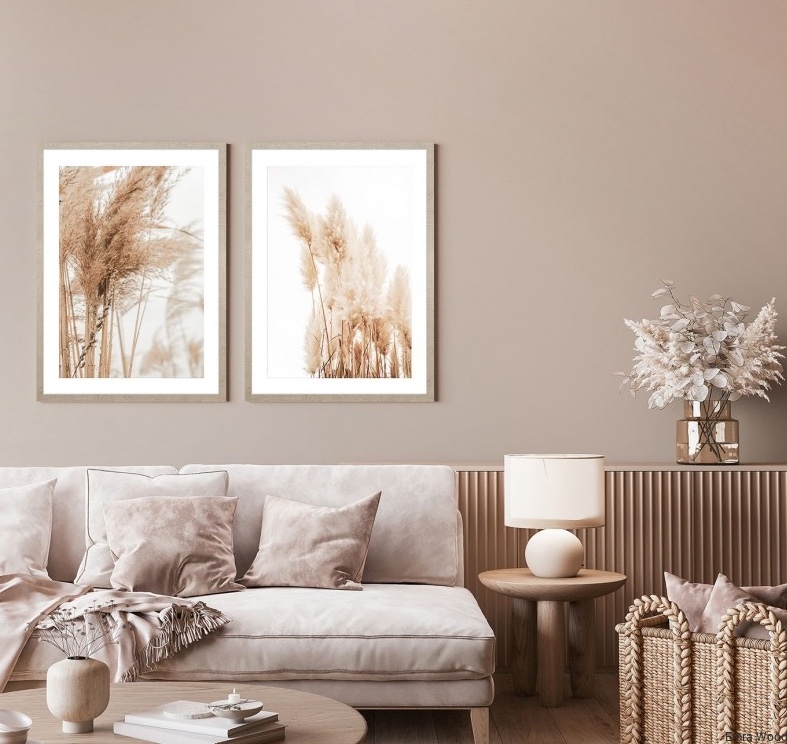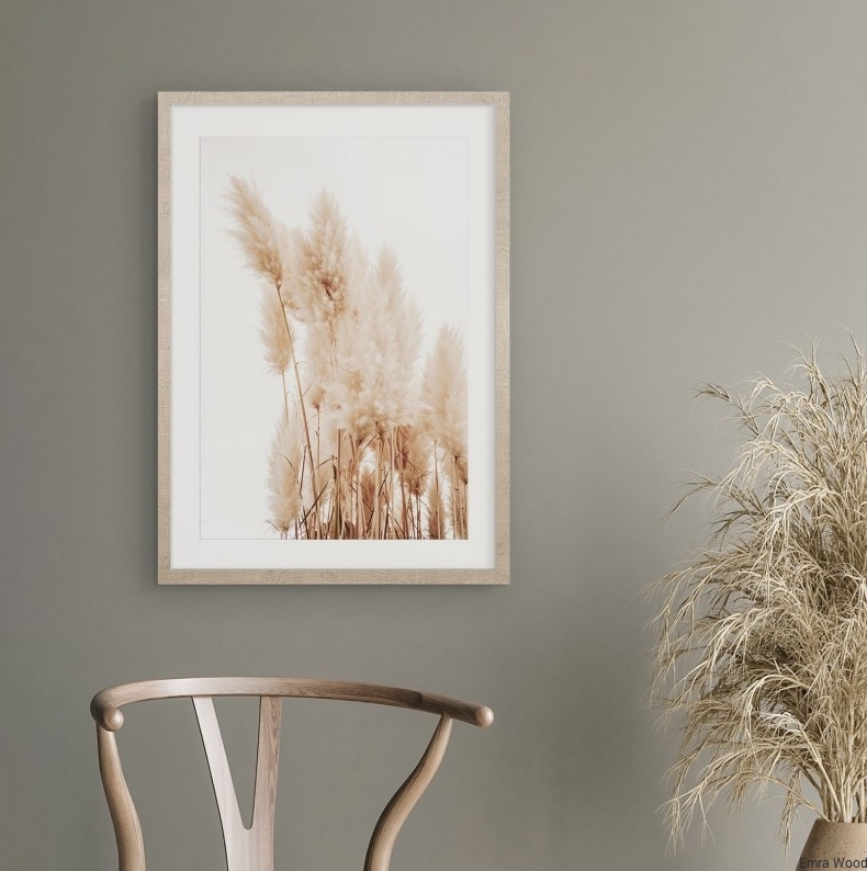 Zachwyć się delikatnym pięknem natury z obrazem przedstawiającym wysokie, puszyste trawy pampasowe. Delikatne kwiatostany, w kolorach od kremowego do łagodnego beżu, występują na jasnym tle, co daje wrażenie lekkości i przestrzeni. Ta harmonijna kompozycja w naturalnych tonach, oprawiona w subtelną, jasną ramę, wniesie do każdego pomieszczenia poczucie spokoju i ciepła. Idealny dla tych, którzy cenią sobie minimalistyczny design i naturalne akcenty. Ten obraz będzie pięknie prezentował się zarówno w domowym salonie, jak i w spokojnym zakątku do medytacji i spa.