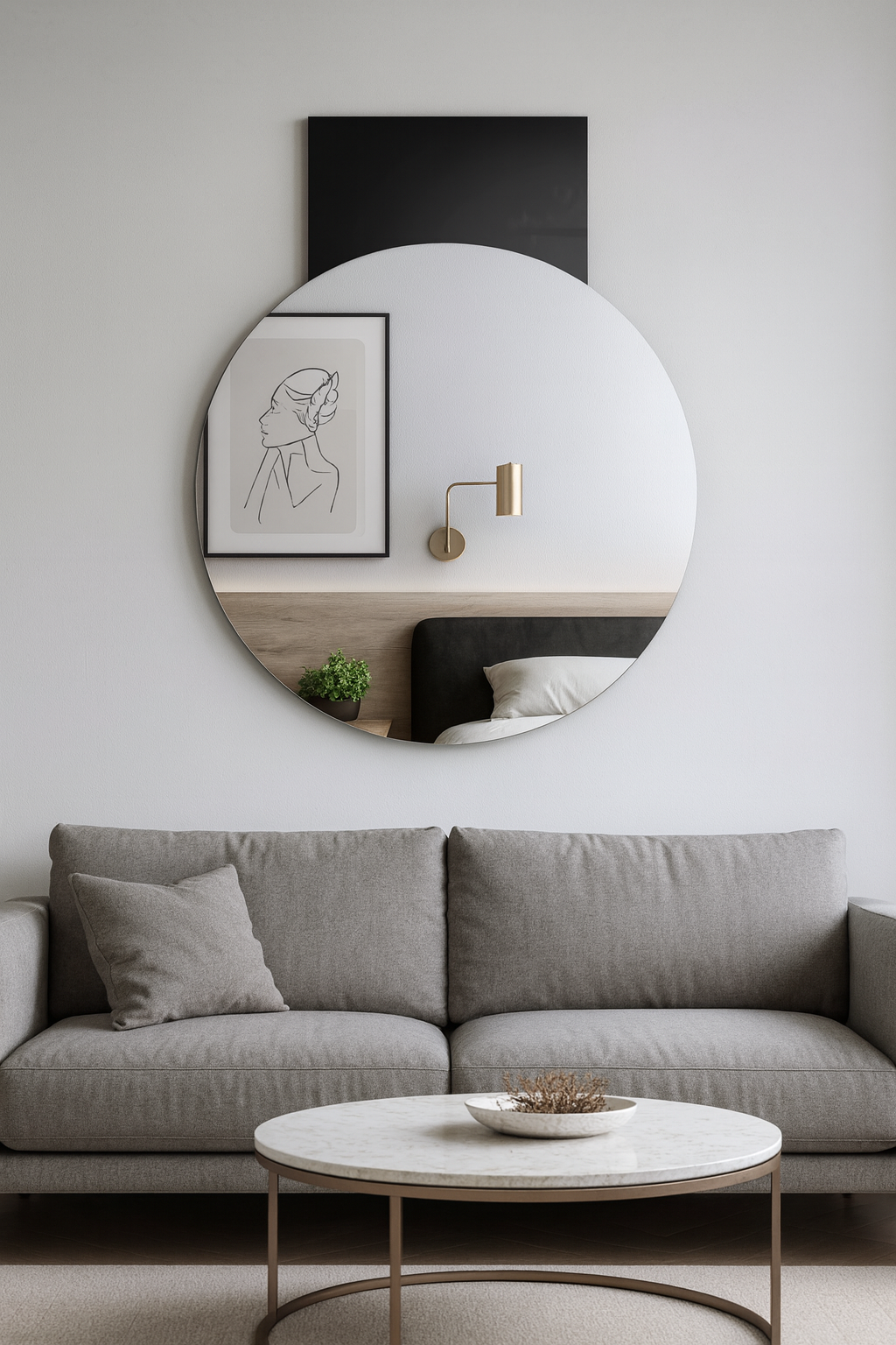 Rodzaj lustra: lustro wielopłaszczyznowe – lustro, które składa się z kilku tafli połączonych ze sobą wedle projektu. Elementy nie są zlicowane w jedną powierzchnię
