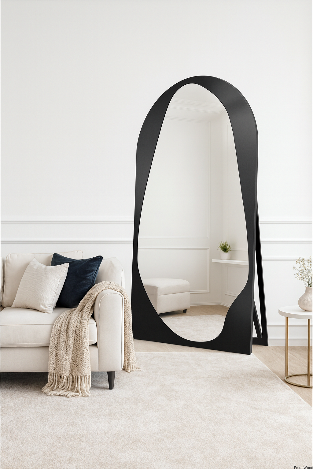 Nowoczesne stojące lustro nieregularne z półką - MATEO SHELF