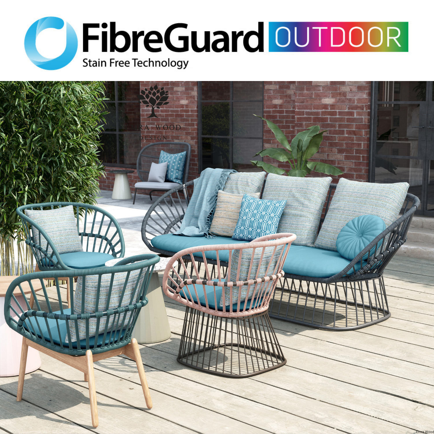• Poduszka na siedzisko na sofę i fotel w tkaninie Poolside Hydro 02- Lagoon, która charakteryzuje się głębokim, turkusowym odcieniem, wprowadzającym odrobinę egzotyki i świeżości do każdego ogrodu.