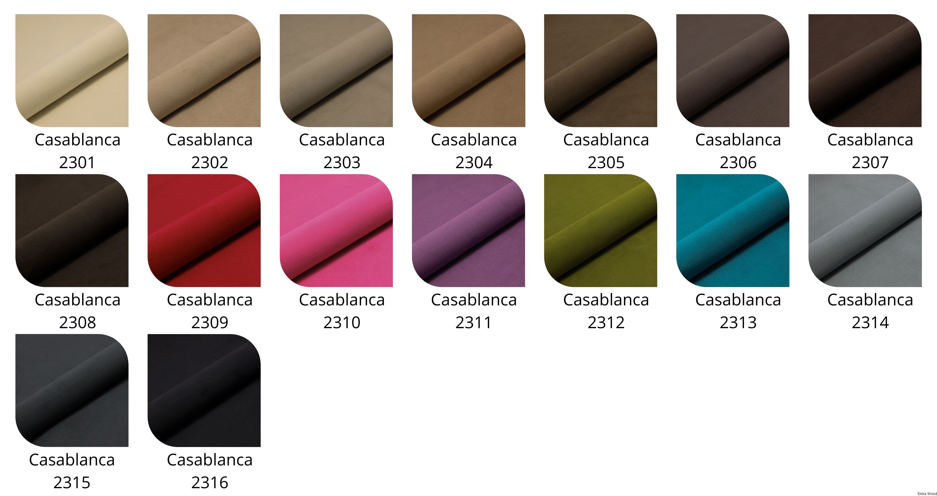 Tkanina Casablanca to elegancki materiał obiciowy typu velvet o krótkim, miękkim włosiu i przyjemnej w dotyku, aksamitnej strukturze.