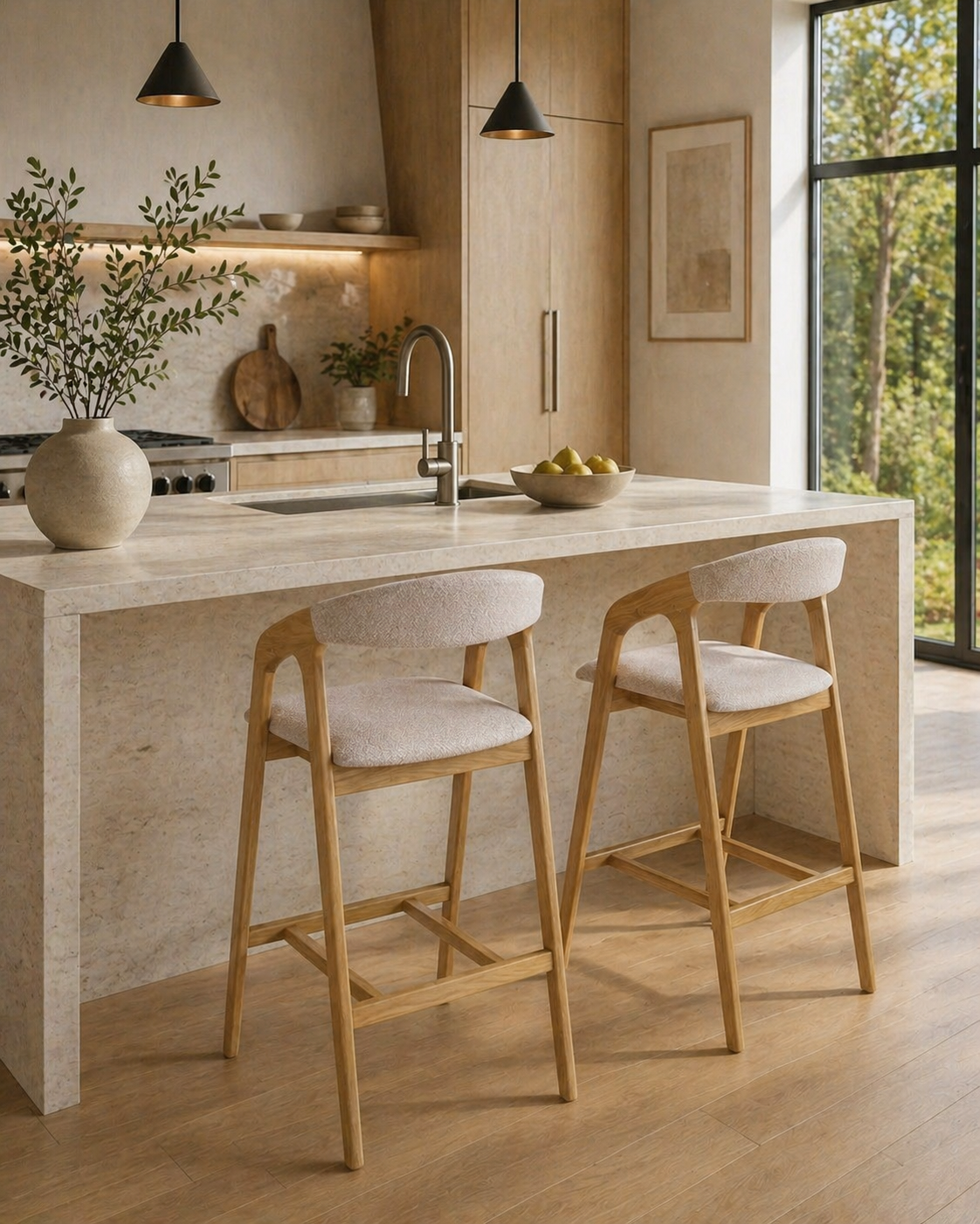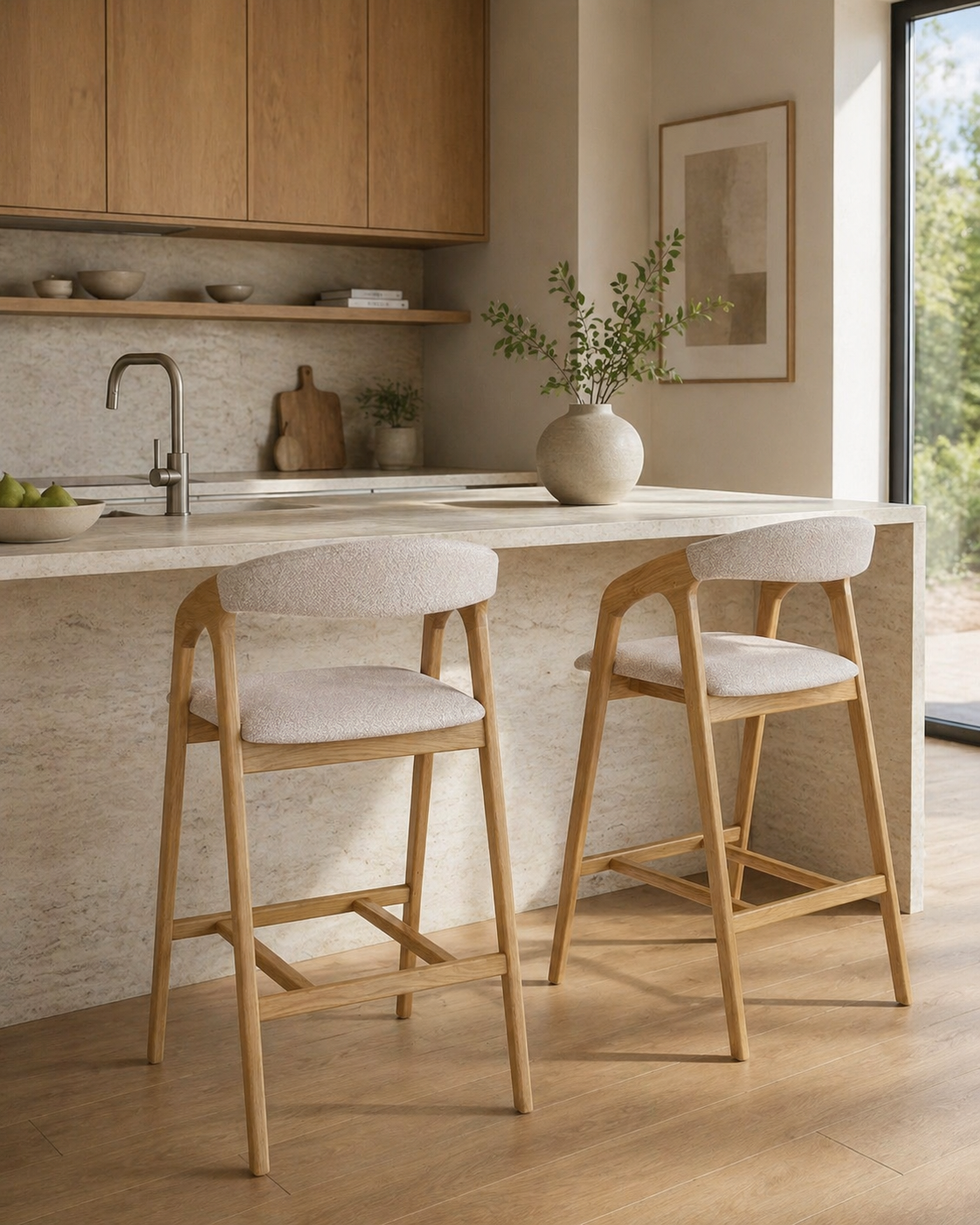 hoker barowy KR-76, hoker tapicerowany, hoker do wyspy kuchennej, hoker do jadalni, nowoczesny hoker, krzesło barowe, hoker czarny stelaż, hoker loft, elegancki hoker, Emra Wood Design