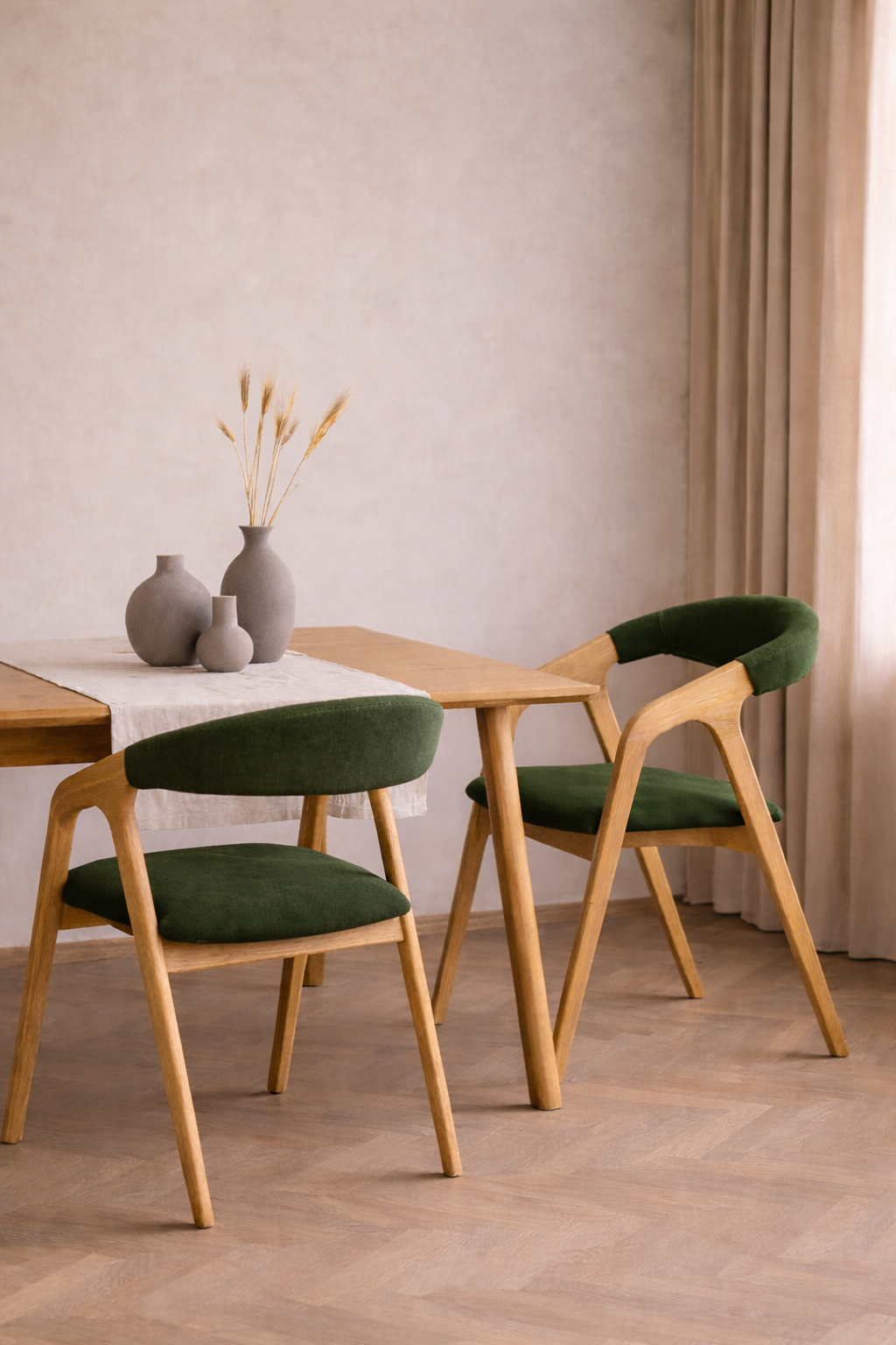 Solidny stelaż wykonany z drewna dębowego podkreśli charakter mebla, a ergonomiczny kształt zapewnia komfort użytkowania nawet podczas długich spotkań przy stole.