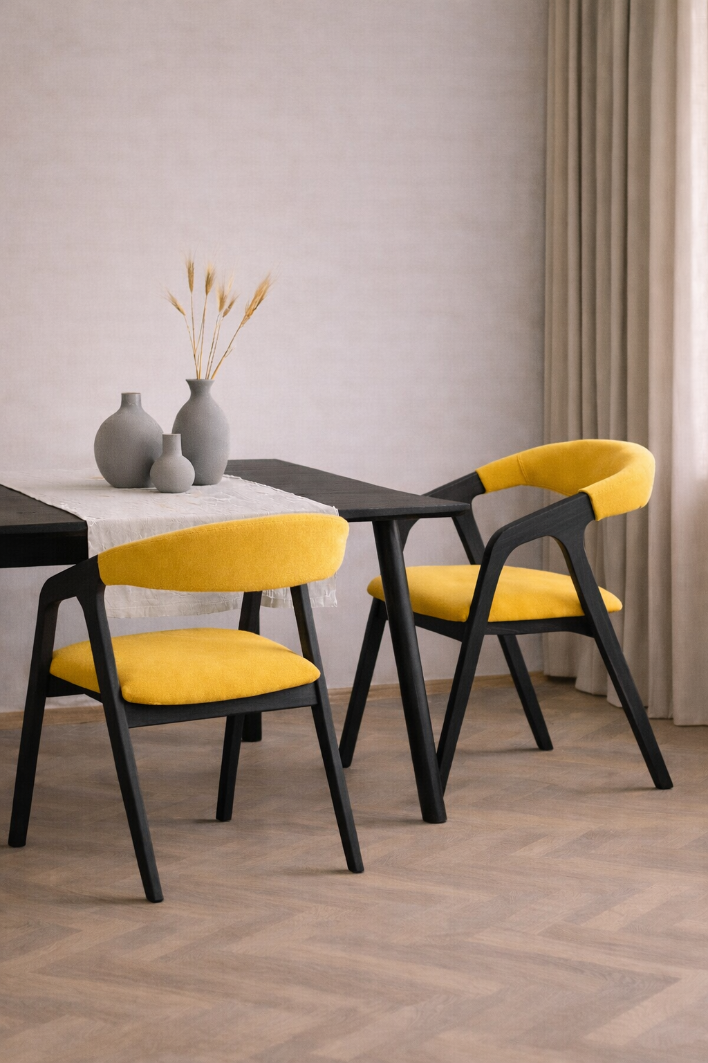 Strona główna » Jadalnia i Kuchnia » Krzesła » PRODUCENT Krzesło Dębowe KR-201 Kolor Tkaniny Żółty Kolor Drewna Czarny