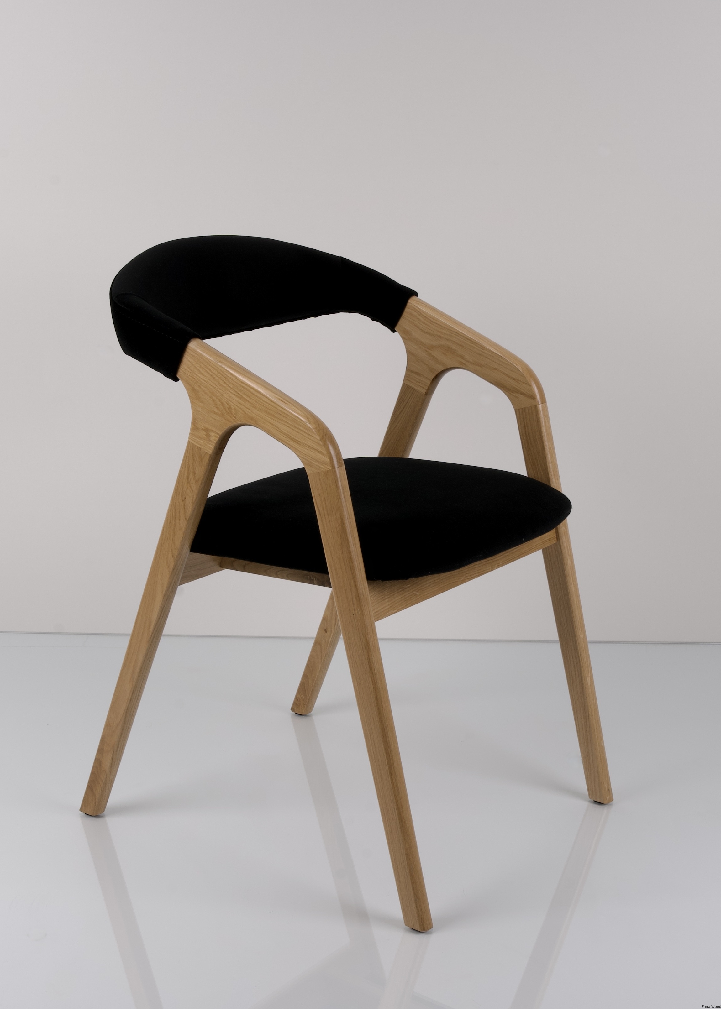 Nowoczesne krzesło KR-201 to wyjątkowe połączenie naturalnego piękna drewna dębowego i komfortu użytkowania. Dzięki subtelnie wyprofilowanemu oparciu oraz zintegrowanym podłokietnikom zapewnia wygodę nawet podczas dłuższego siedzenia. Tapicerowane siedzisko z wysokiej jakości tkaniny doskonale dopełnia całość, dodając krzesłu elegancji i przytulności.