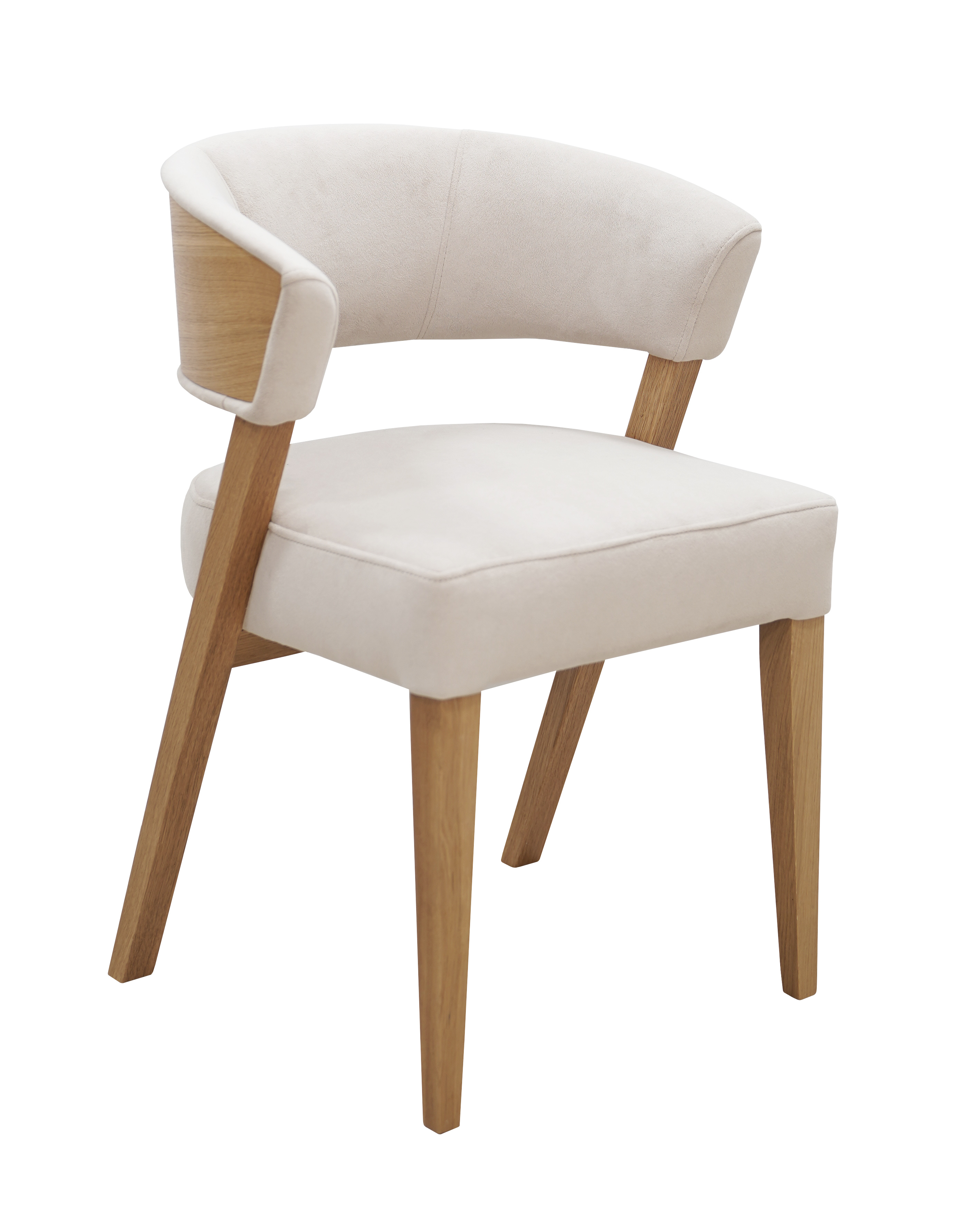 Nowoczesne krzesło KR-206 to wyjątkowe połączenie naturalnego piękna drewna dębowego i komfortu użytkowania. Dzięki subtelnie wyprofilowanemu oparciu oraz zintegrowanym podłokietnikom zapewnia wygodę nawet podczas dłuższego siedzenia. Tapicerowane siedzisko z wysokiej jakości tkaniny doskonale dopełnia całość, dodając krzesłu elegancji i przytulności.