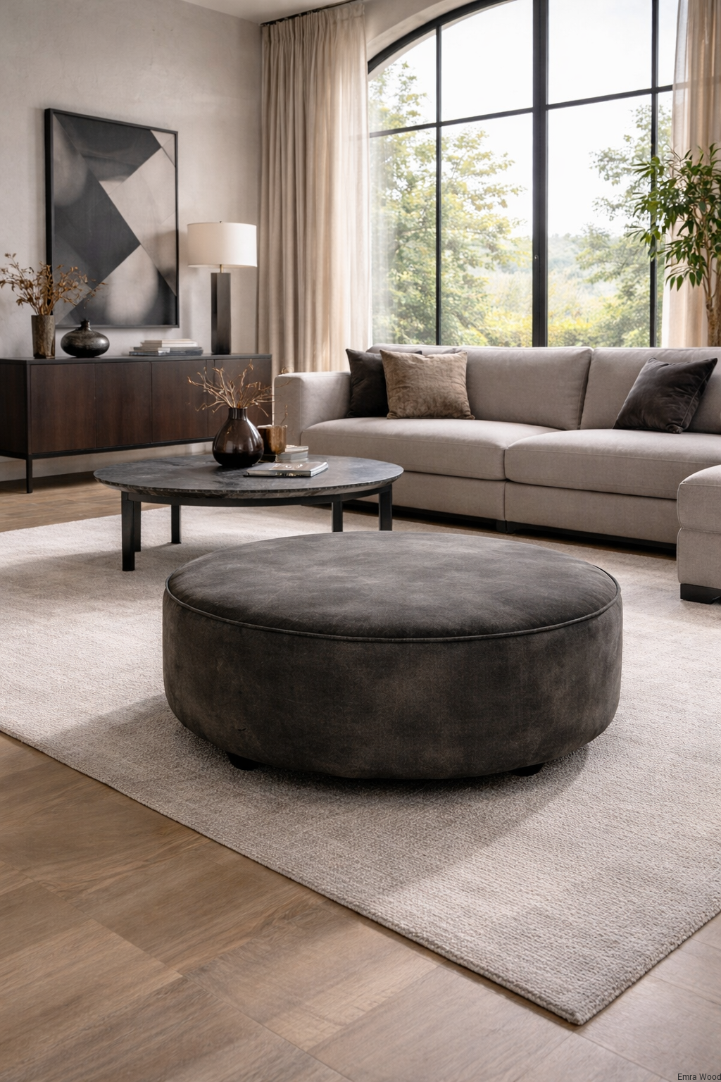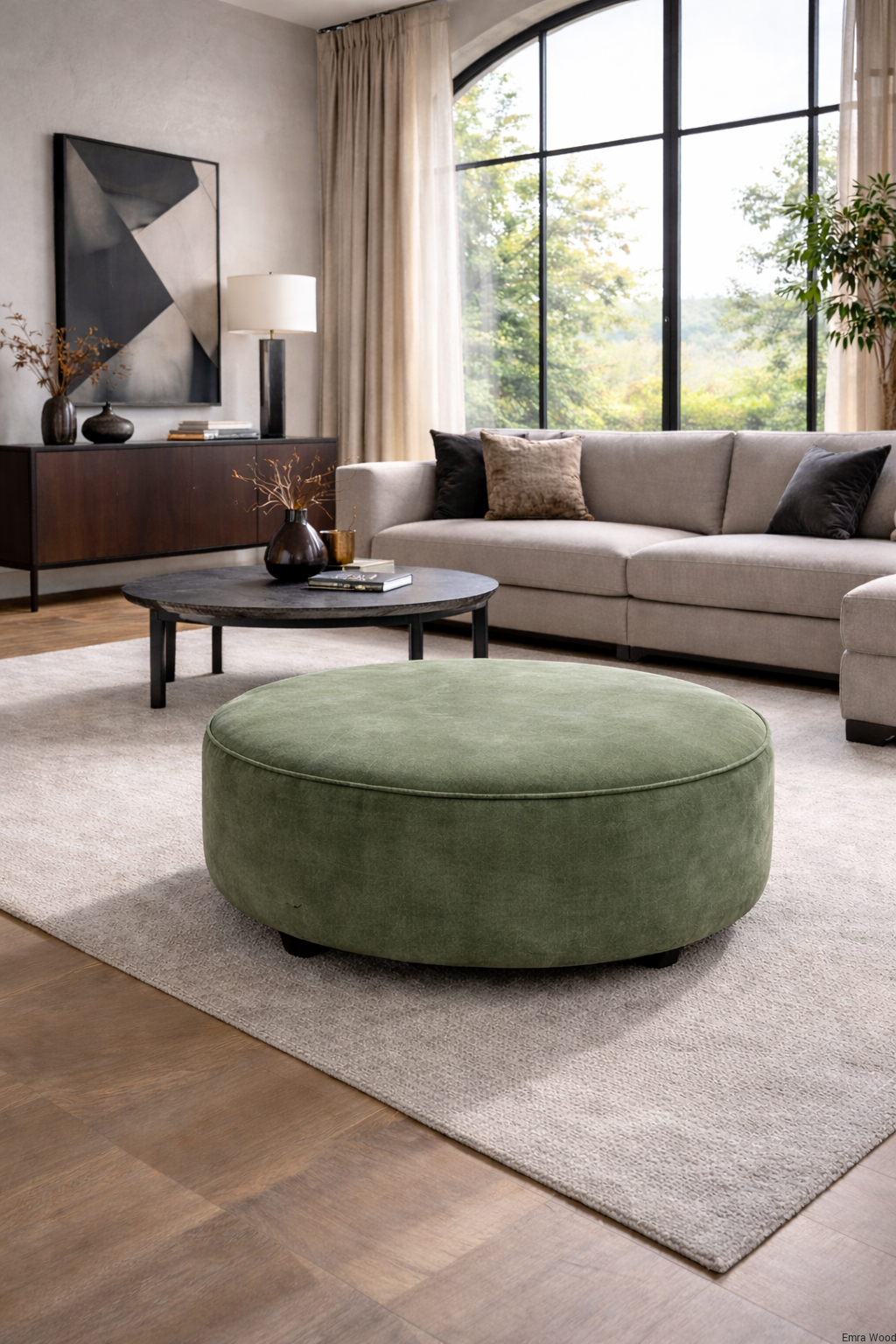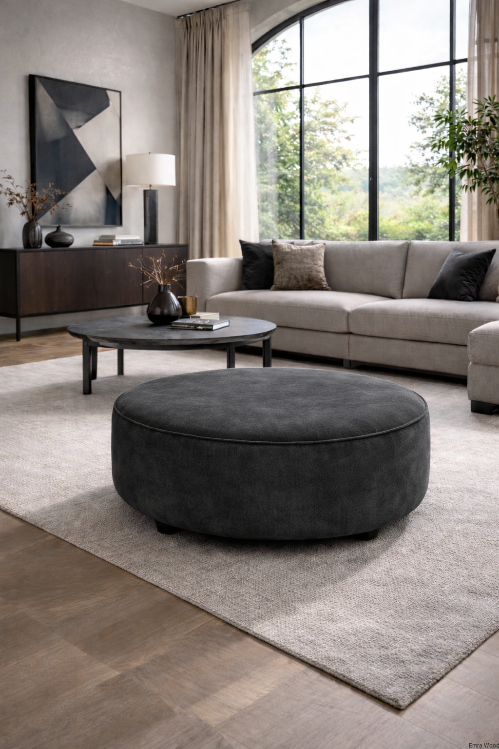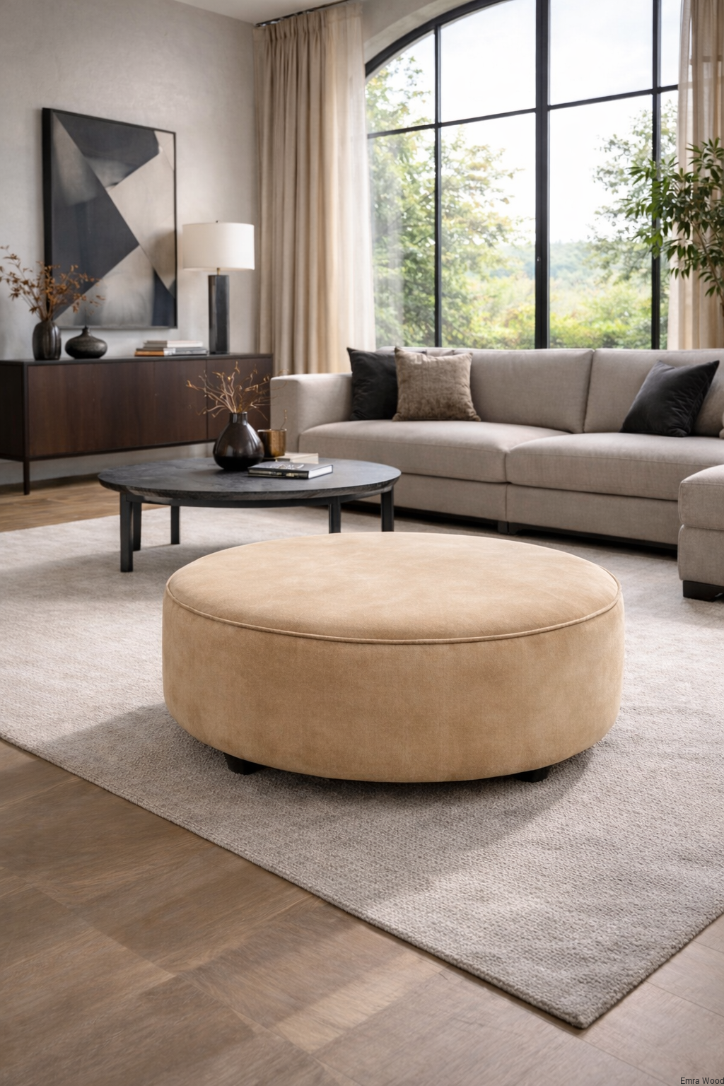 Tapicerowana pufa okrągłą jest połączeniem nowoczesnego designu i wygody, doskonale wpisuje się w nowoczesne trendy wnętrzarskie, dodając przestrzeni elegancji i stylu. Okrągłe, tapicerowane siedzisko pufy zapewnia wygodne miejsce do odpoczynku i relaksu. Wykonane z wysokiej jakości materiałów, miękkie i przyjemne w dotyku. Pufa dostępna jest w różnych wersjach kolorystycznych, co pozwala na dopasowanie jej do indywidualnego stylu i charakteru Twojej przestrzeni.