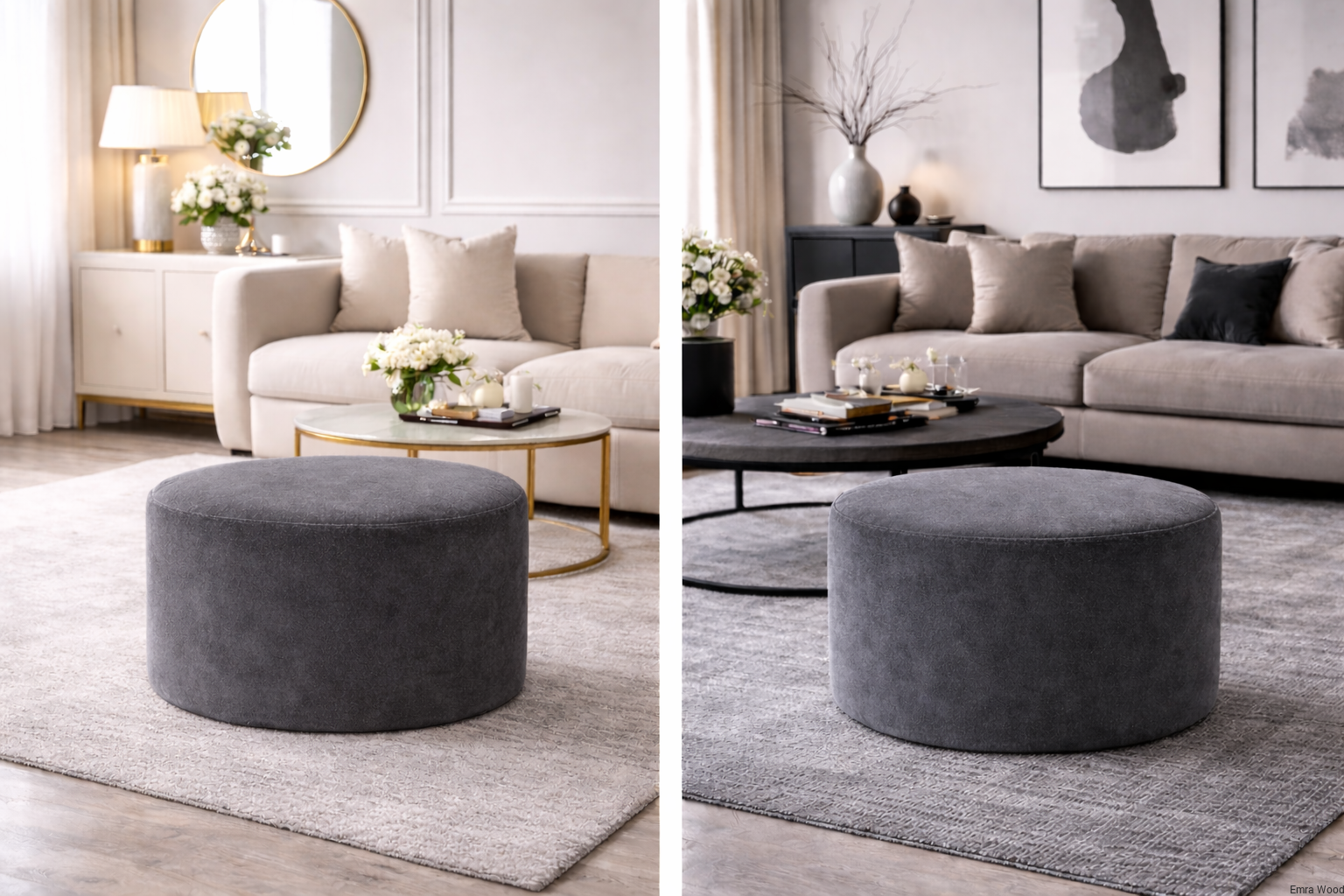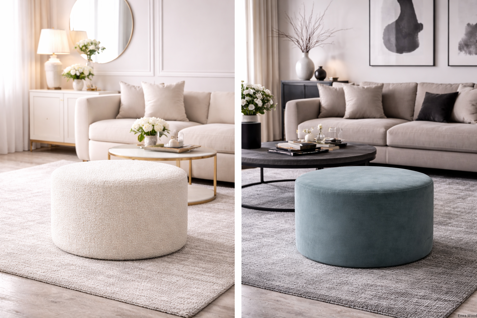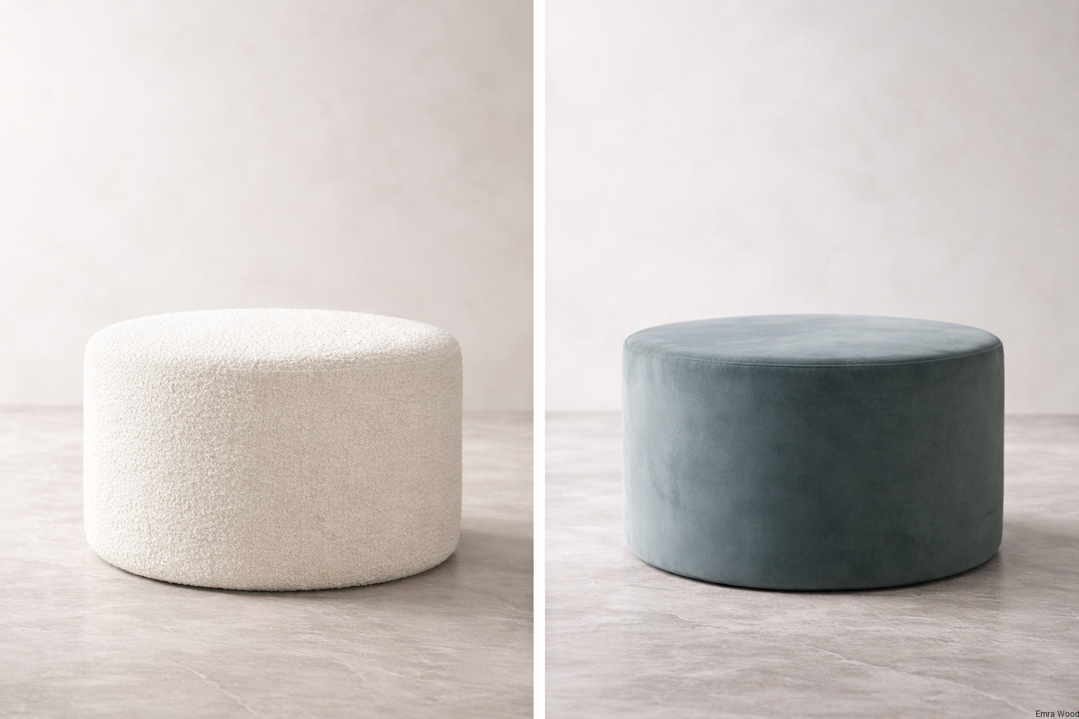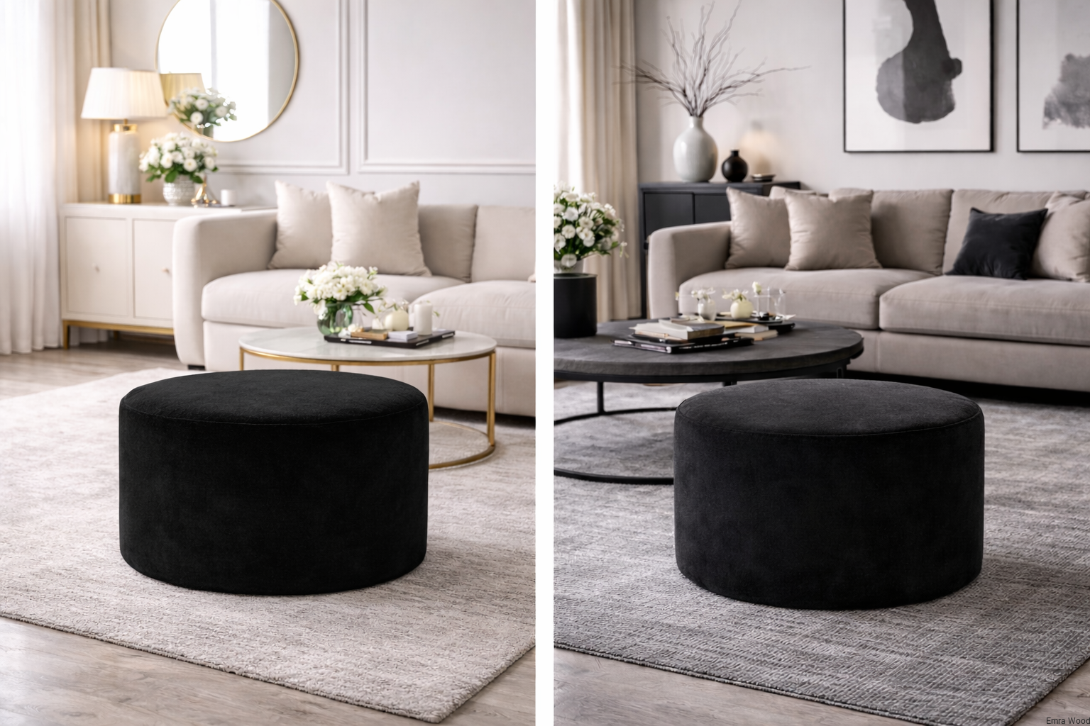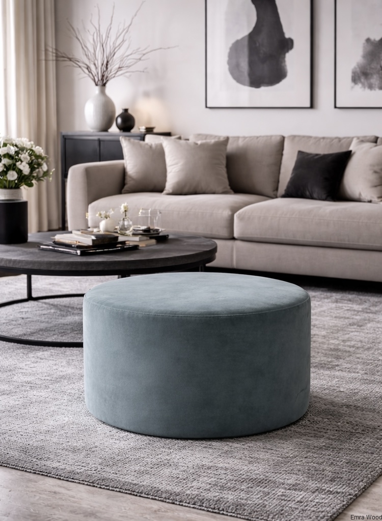 Pufa MONTE – Luksusowa Okrągła Pufa Welurowa do Salonu i Strefy Lounge