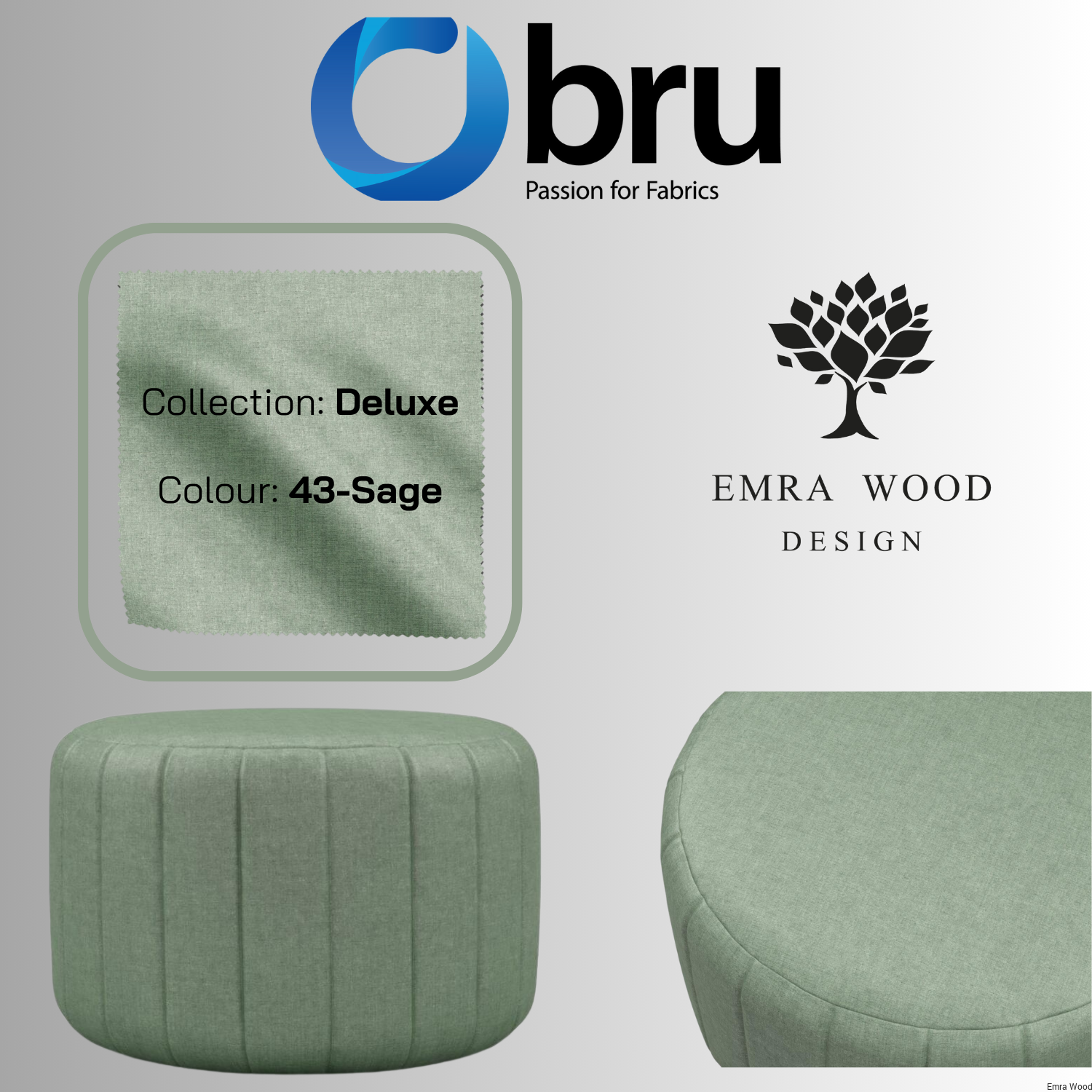 Pufa NELA  - okrągła pufa na złotej podstawie | Emra Wood Design