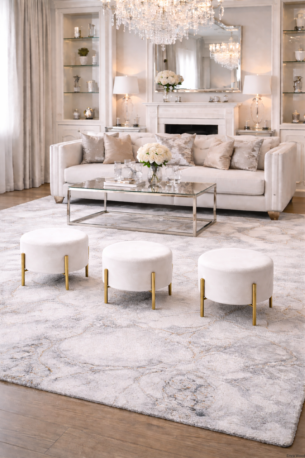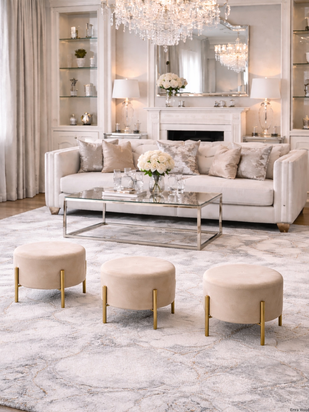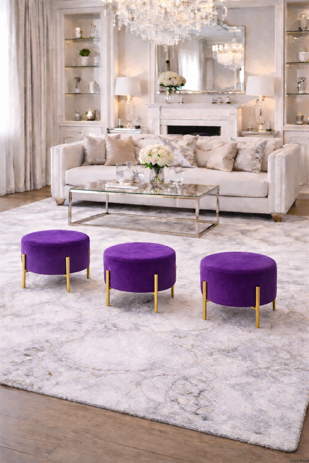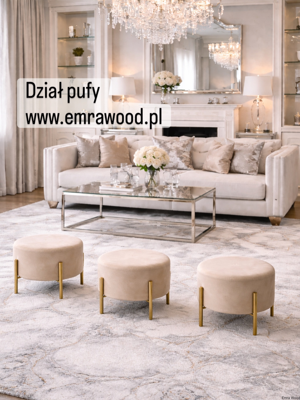 Pufa LILI - okrągła pufa na złotych nogach | Emra Wood Design