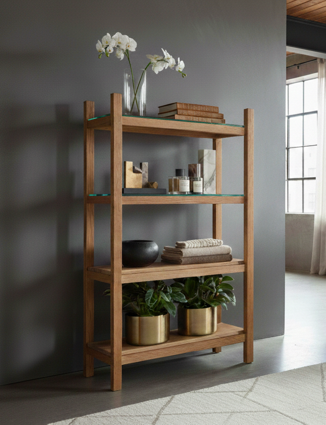 REGAŁ NA KSIĄŻKI / Stelaż Drewno Lite Dąb Kolor Naturalny / Model RNK-18