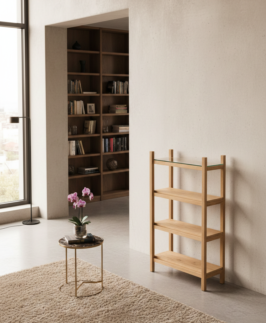 REGAŁ NA KSIĄŻKI / Stelaż Drewno Lite Dąb Kolor Naturalny / Model RNK-19