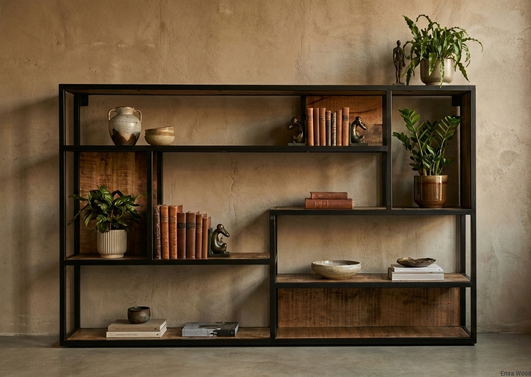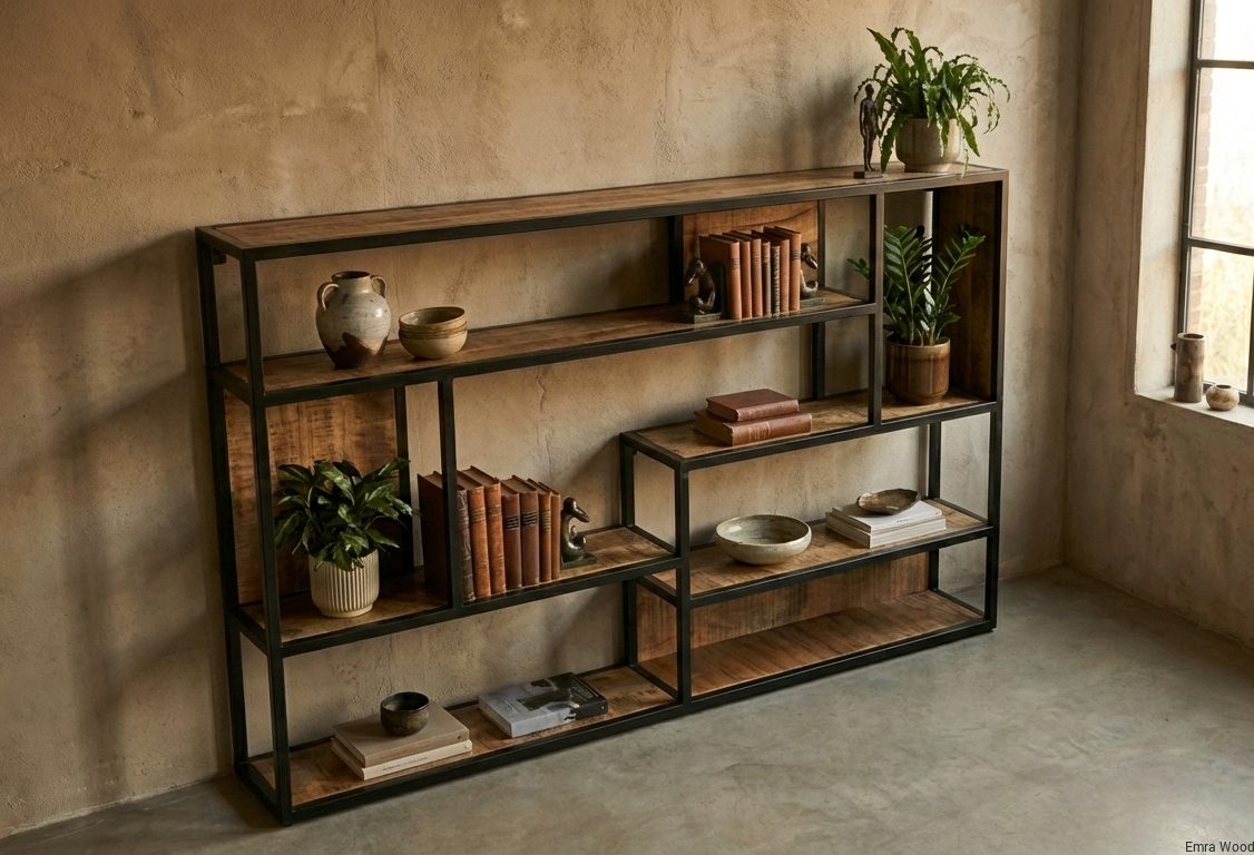 REGAŁ NA KSIĄŻKI / Stelaż Stal Kolor Czarny Drewno Olchowe Olejowane / Model RNK-1