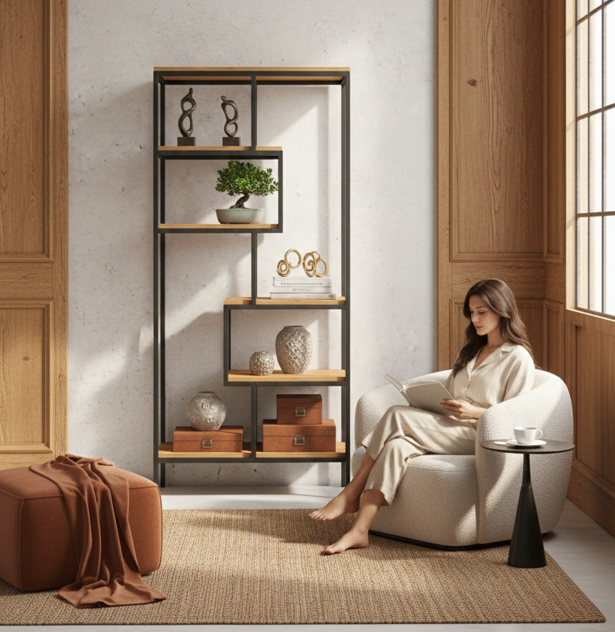 REGAŁ NA KSIĄŻKI / Stelaż Stal Kolor Czarny Drewno Olchowe Olejowane / Model RNK-109