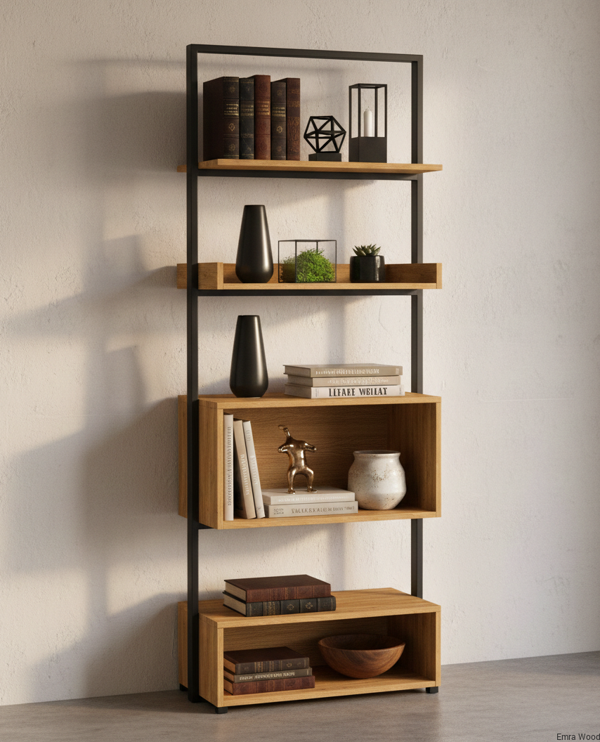 REGAŁ NA KSIĄŻKI / Stelaż Stal Kolor Czarny Drewno Olchowe Olejowane / Model RNK-127B