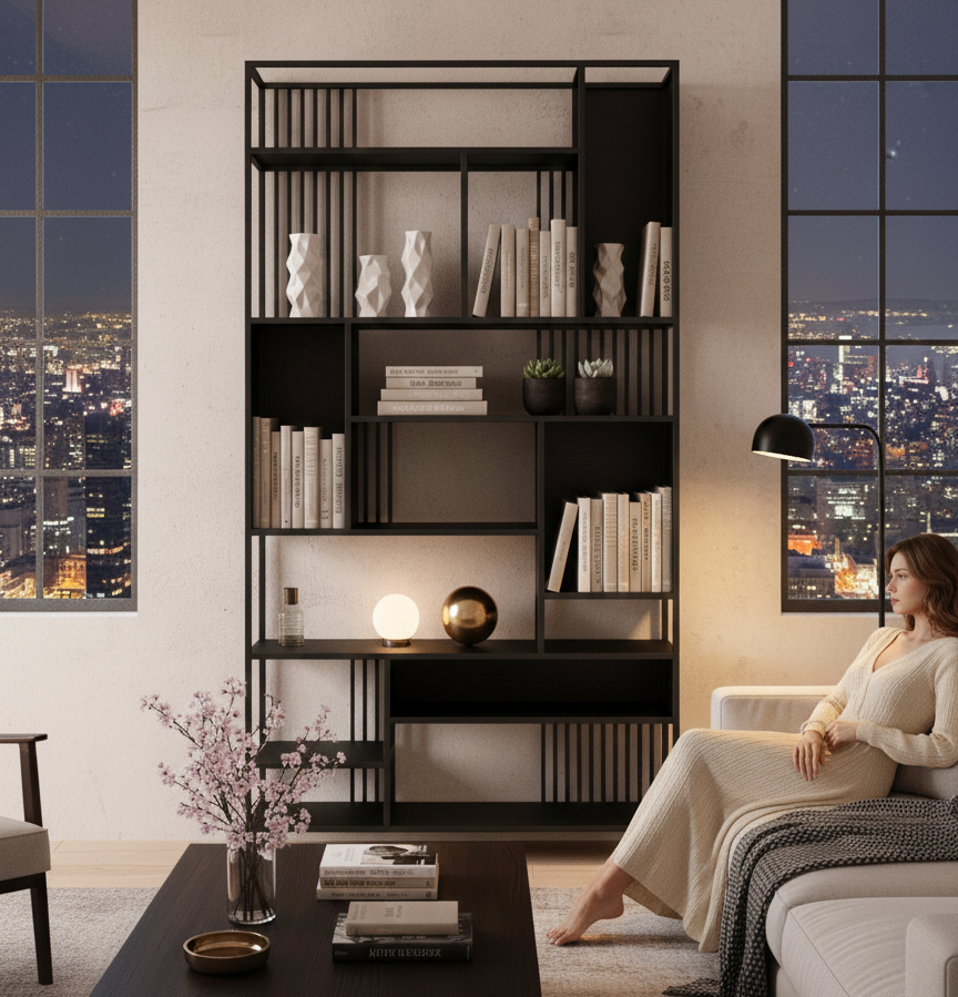 REGAŁ NA KSIĄŻKI / Stelaż Stal Kolor Czarny  / Model RNK-143