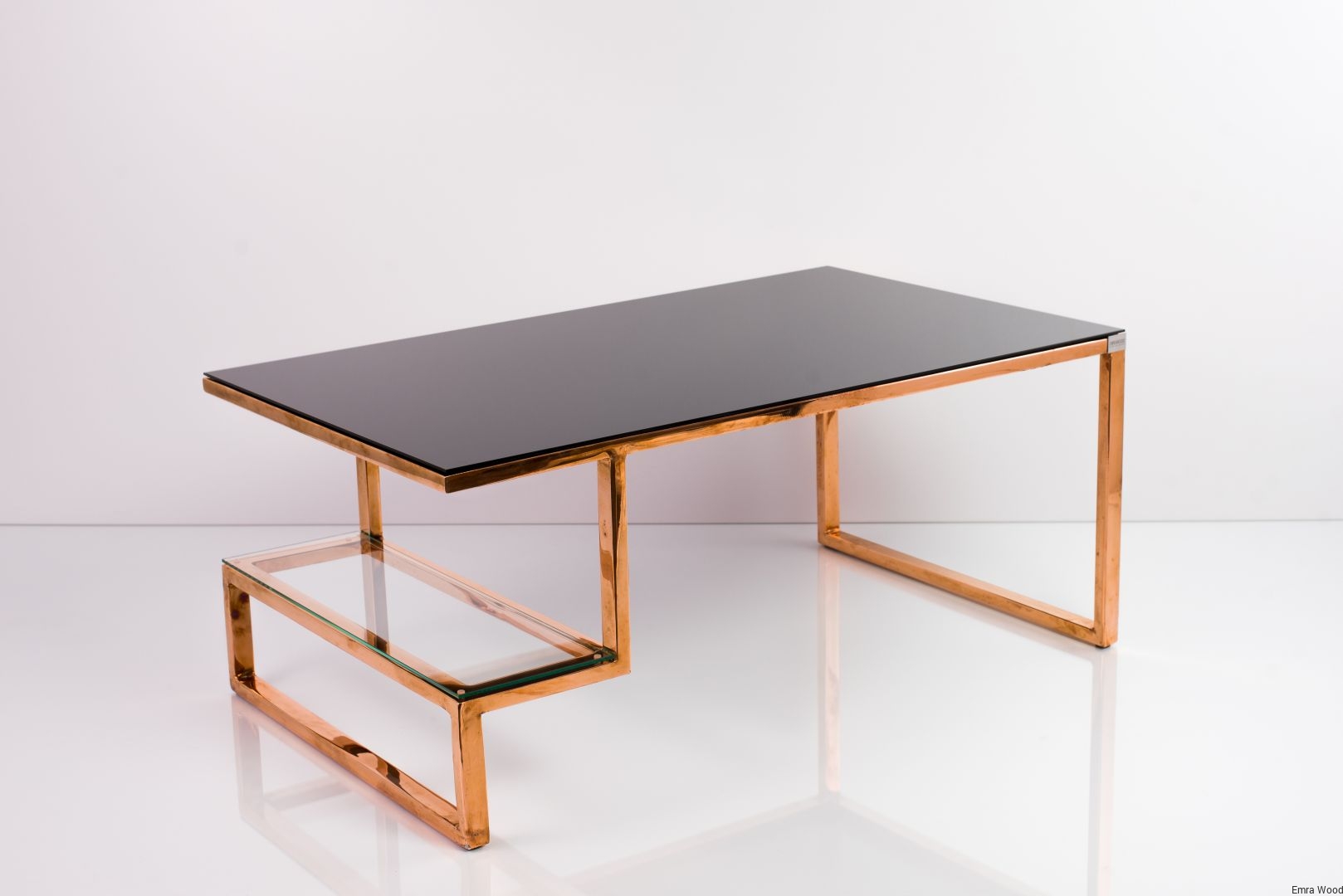 STOLIK KAWOWY Stelaż Stal Miedziana / Blat Szkło Hartowane model SKM - 3