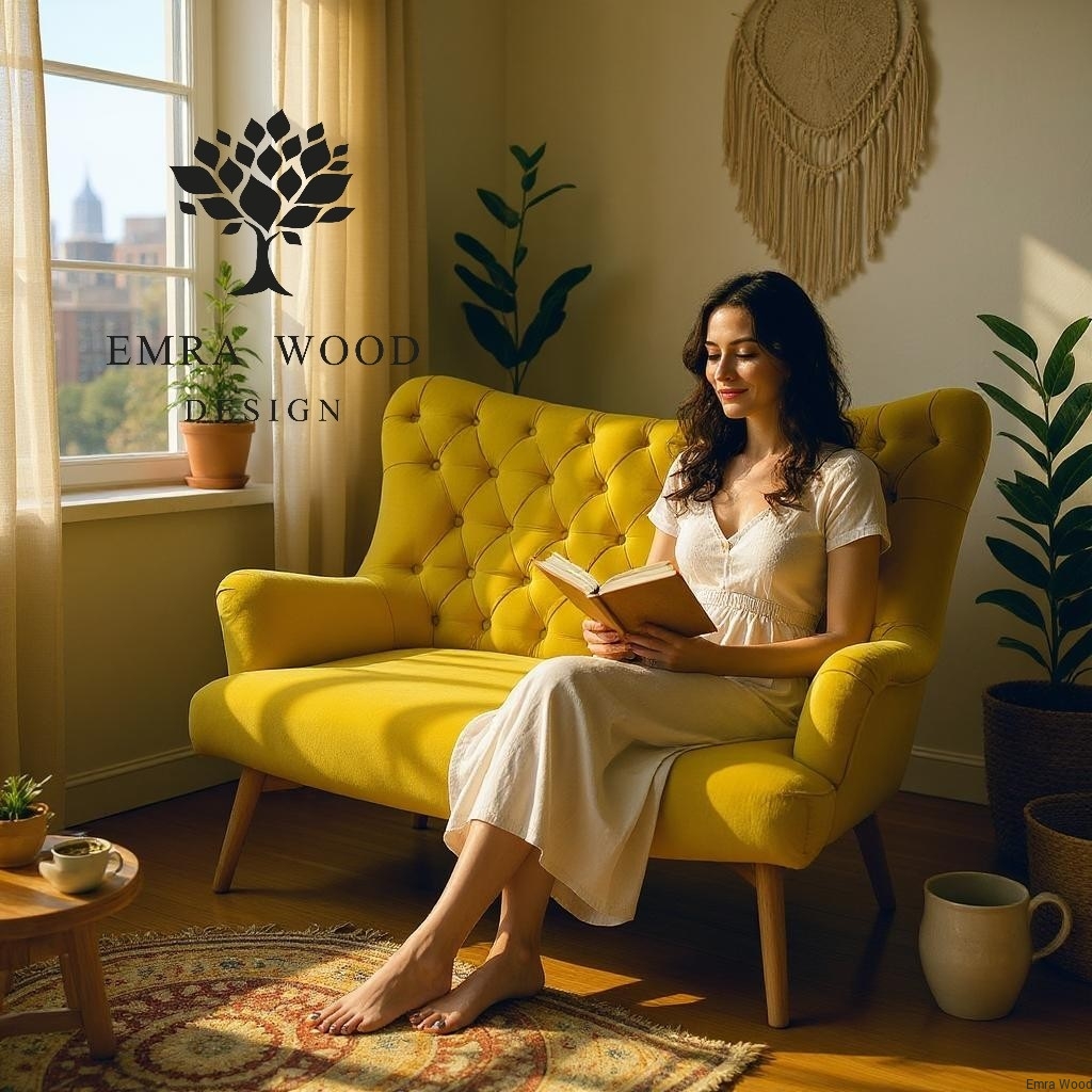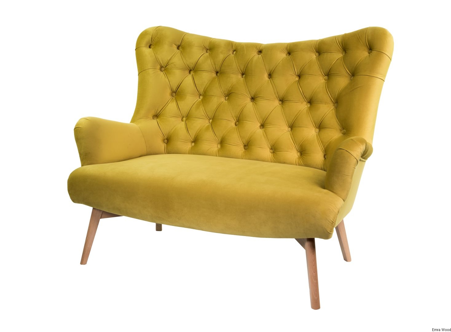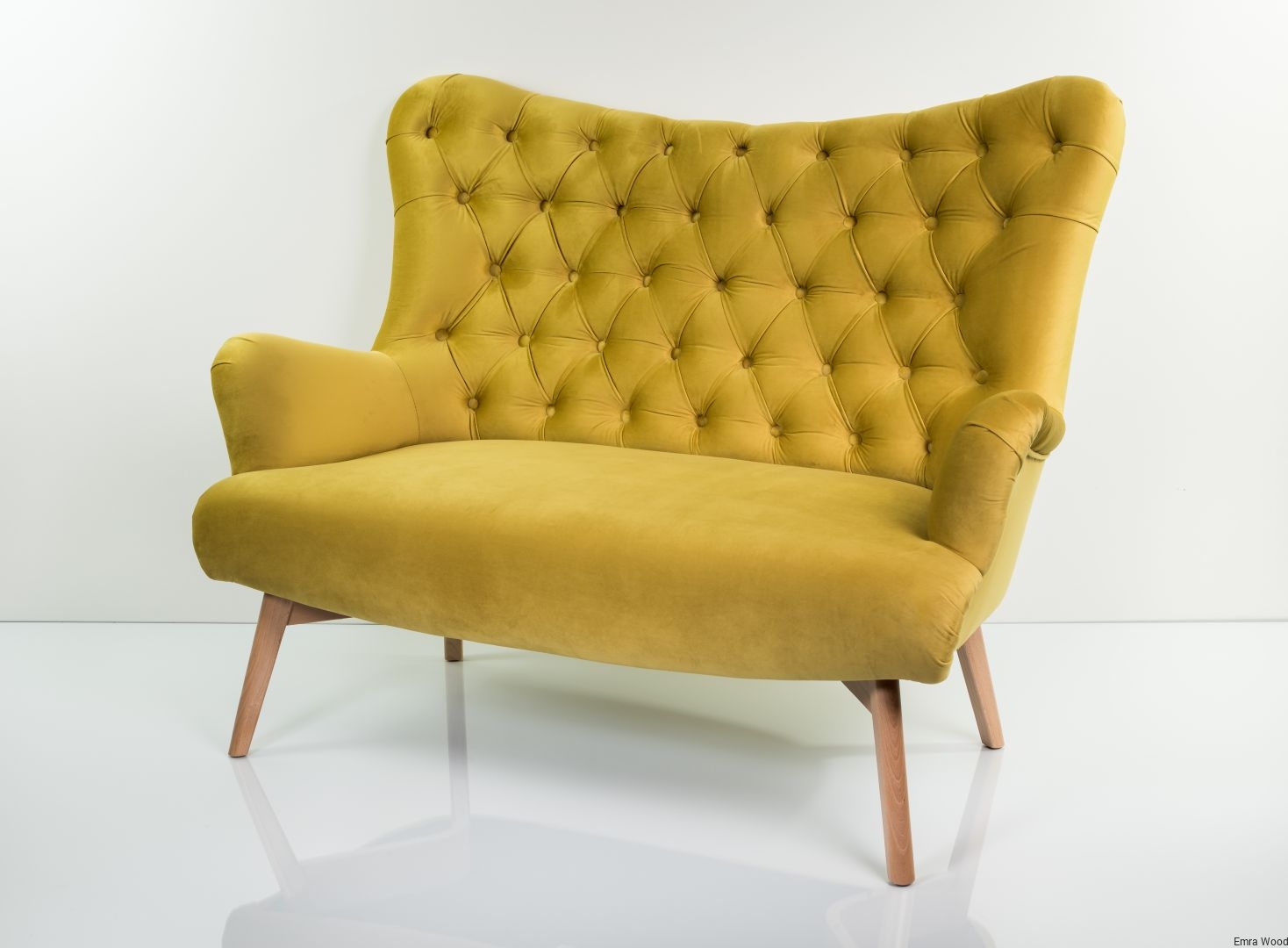 Sofa dwuosobowa Chesterfield Cytrynowa Żółcień PIANO 07 / Nóżki Naturalne
