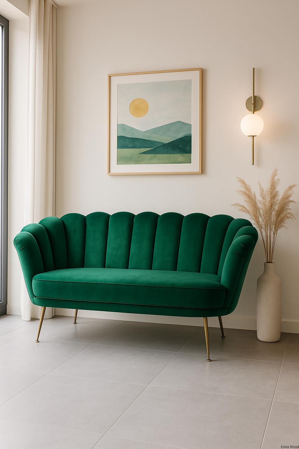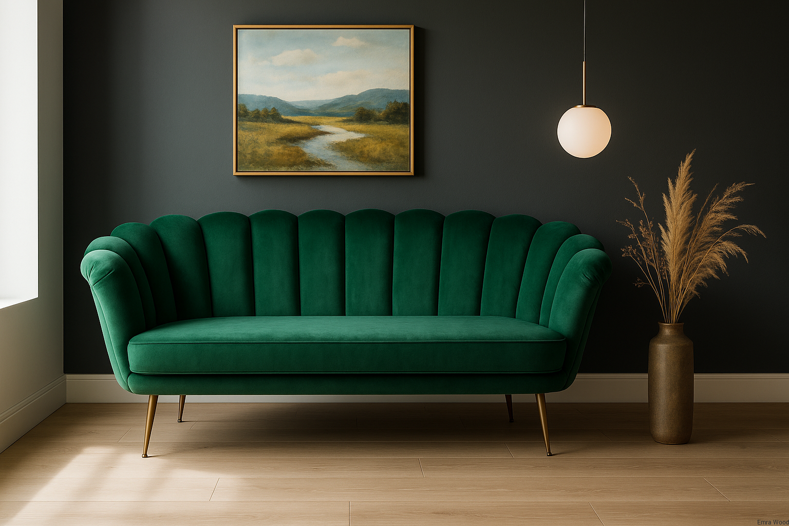 Sofa dwuosobowa / Tkanina Butelkowa Zieleń Piano 08 / Nóżki Kolor Złoty