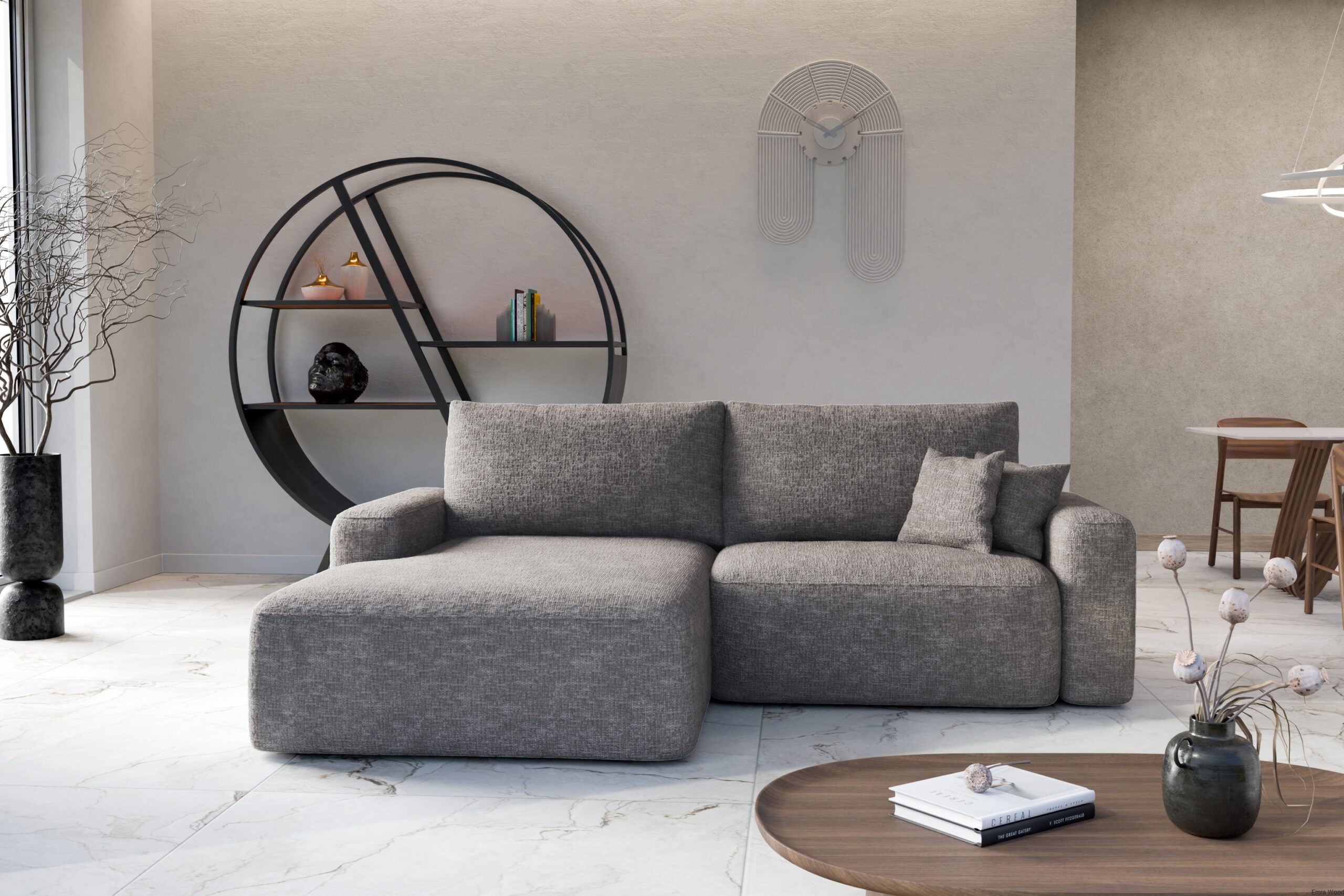 Narożnik Soho zapewnia komfort codziennego wypoczynku i funkcjonalność w jednym. Funkcja rozkładania pozwala stworzyć wygodne miejsce do spania, a pojemnik na pościel pomaga utrzymać porządek. Dzięki ergonomii siedzisk i wyprofilowanym oparciom, wypoczynek staje się przyjemnością, a salon zyskuje nowoczesny i elegancki wygląd.
