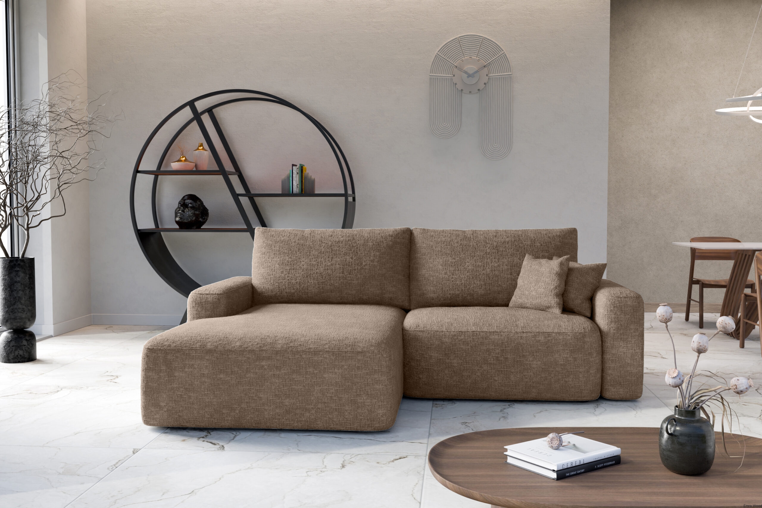 Narożnik wypoczynkowy Soho dostępny jest w szerokiej gamie tkanin i kolorów, co umożliwia dopasowanie mebla do indywidualnego stylu wnętrza. Jasne odcienie podkreślają przestronność pomieszczenia i harmonizują z minimalistycznymi aranżacjami, natomiast intensywne barwy wprowadzają do wnętrza nowoczesny charakter i elegancję. Tkaniny są miękkie, trwałe i łatwe w pielęgnacji, co dodatkowo zwiększa wygodę użytkowania i trwałość mebla.