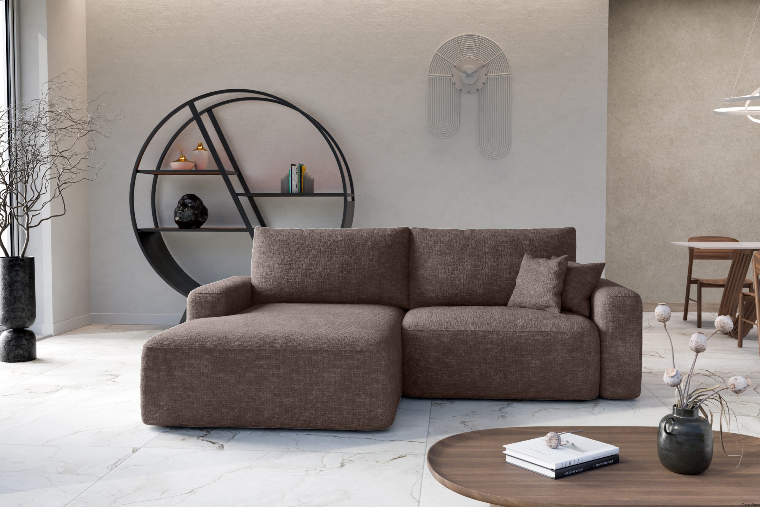 Narożnik Soho zapewnia komfort codziennego wypoczynku i funkcjonalność w jednym. Funkcja rozkładania pozwala stworzyć wygodne miejsce do spania, a pojemnik na pościel pomaga utrzymać porządek. Dzięki ergonomii siedzisk i wyprofilowanym oparciom, wypoczynek staje się przyjemnością, a salon zyskuje nowoczesny i elegancki wygląd.