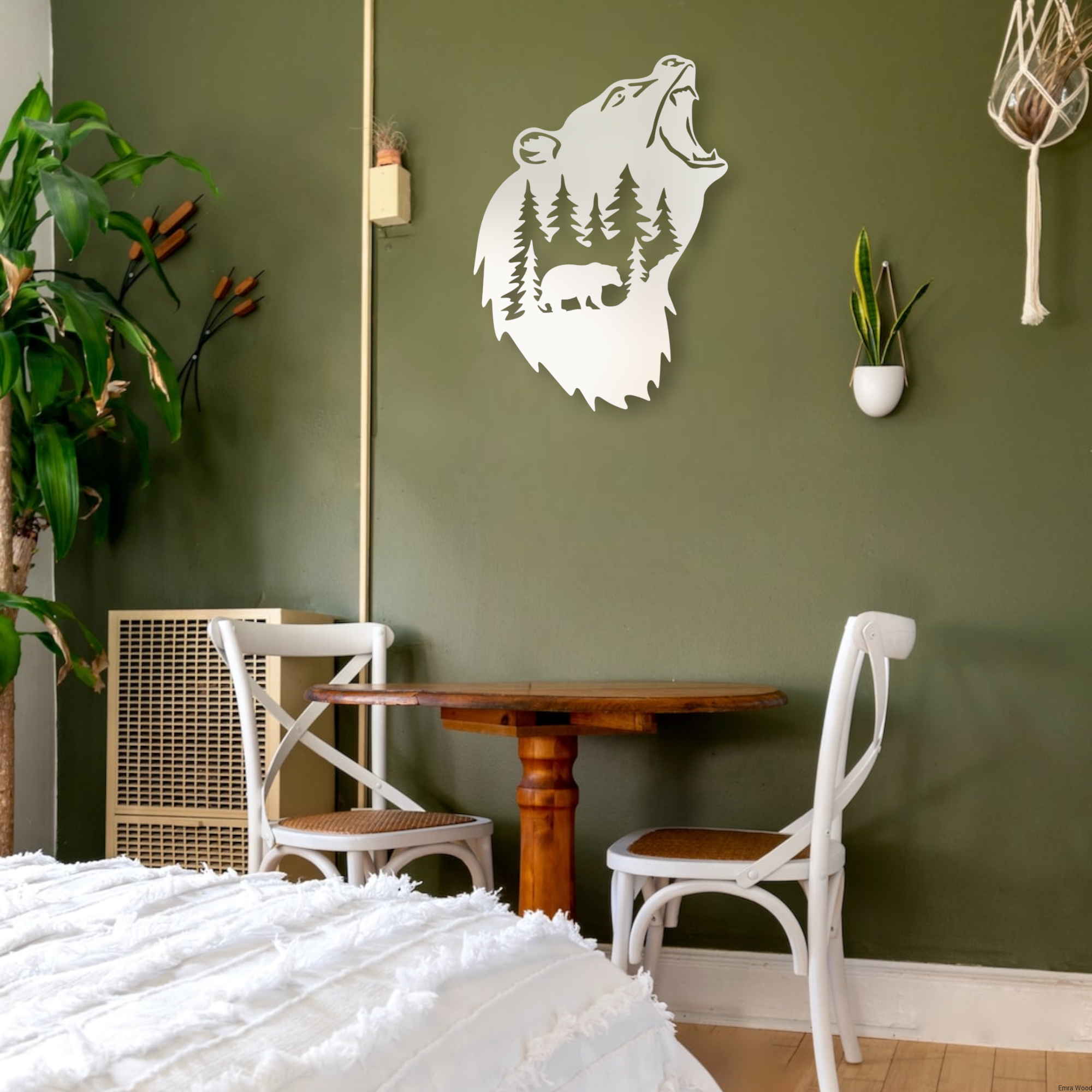 Stalowa Dekoracja na Ścianę z Sylwetką Niedźwiedzia Biały