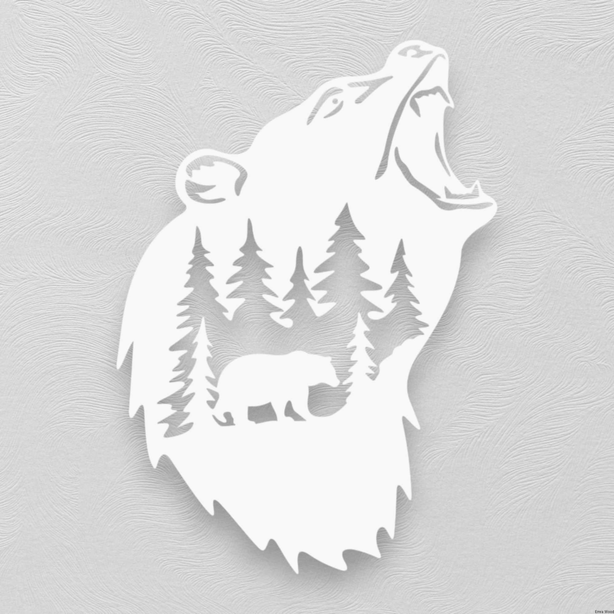 • Sylwetka Niedźwiedzia: Centralnym motywem dekoracji jest wyraźna i minimalistyczna sylwetka niedźwiedzia. To zwierzę symbolizuje siłę, dzikość i harmonię z przyrodą.