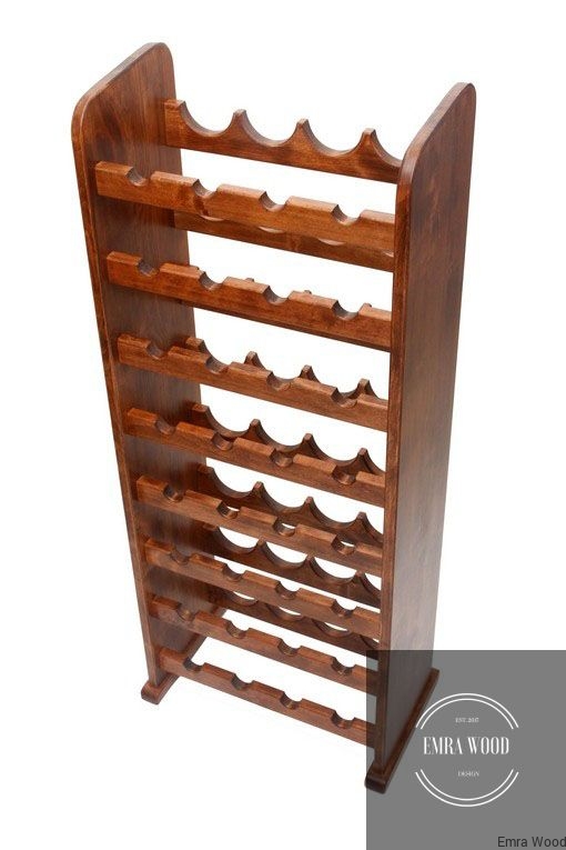 NOWOCZESNY , DREWNIANY STOJAK NA WINO / Stelaż Orzech / Gatunek Drewna Czereśnia
